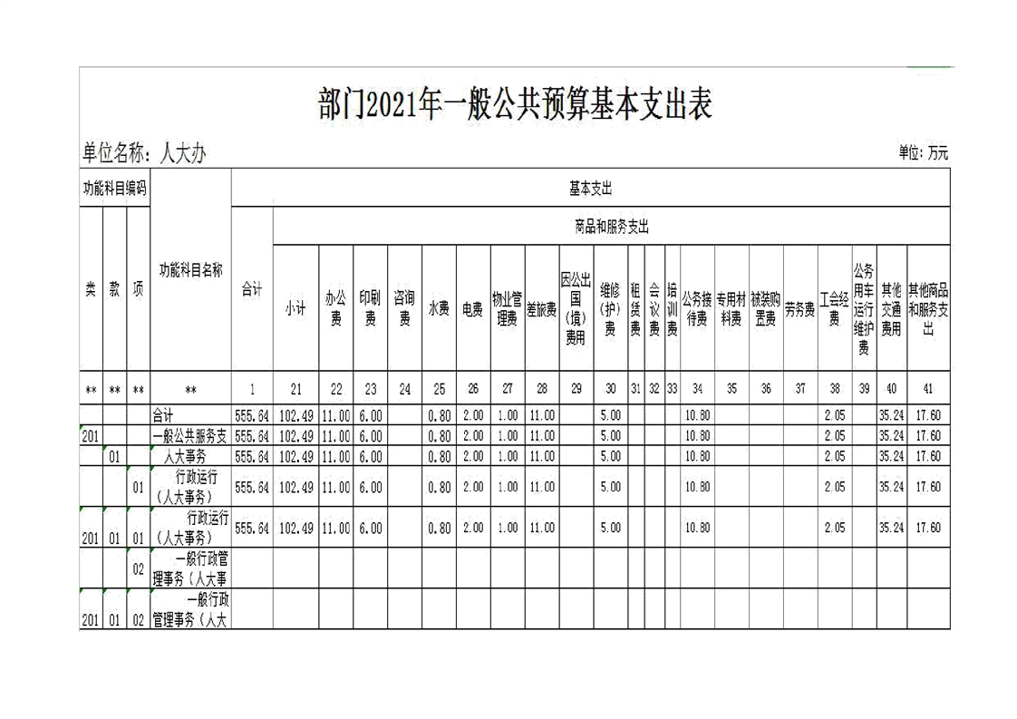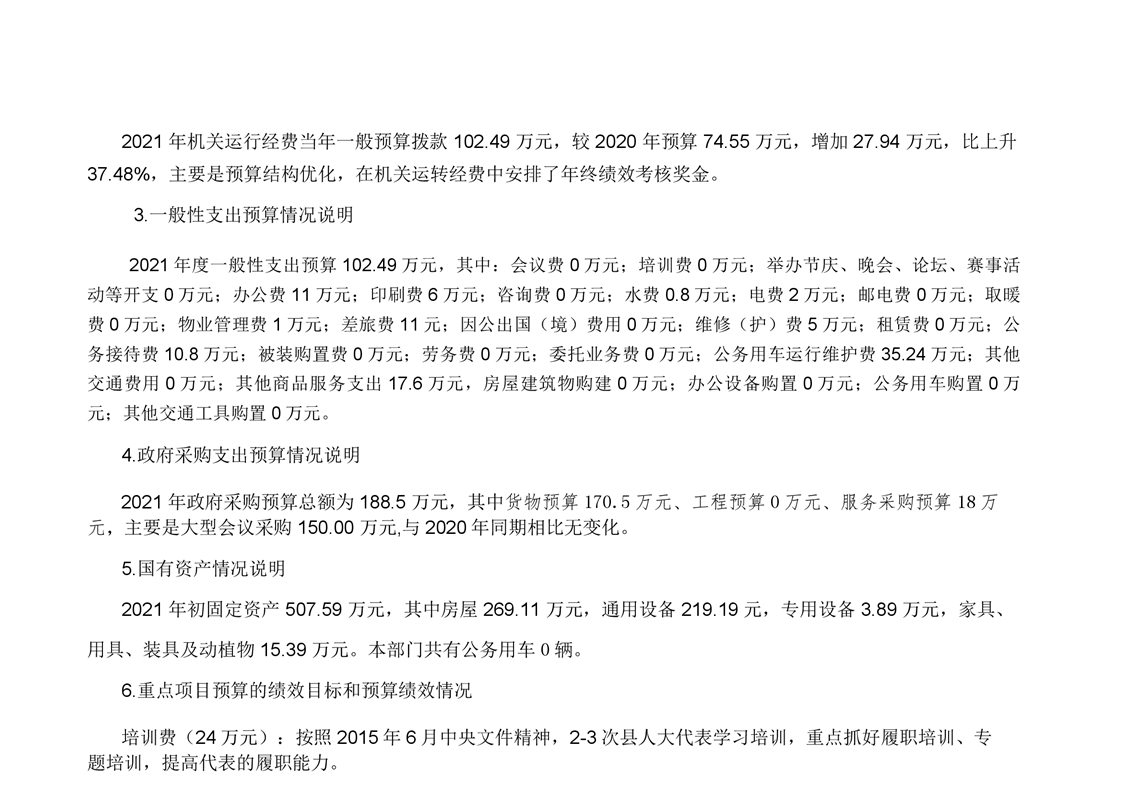 2021年县人大办预算公开情况说明