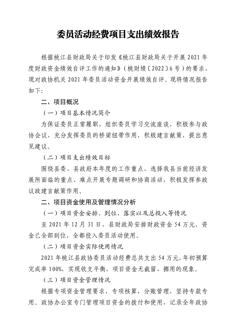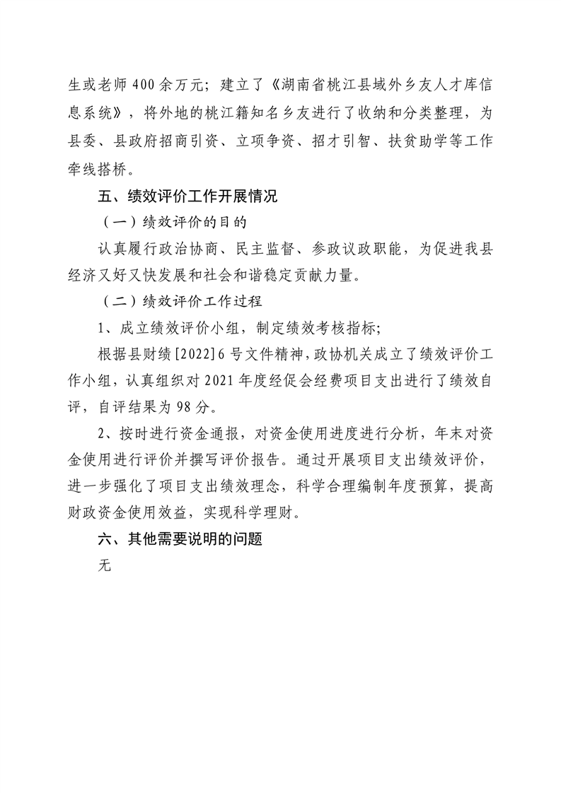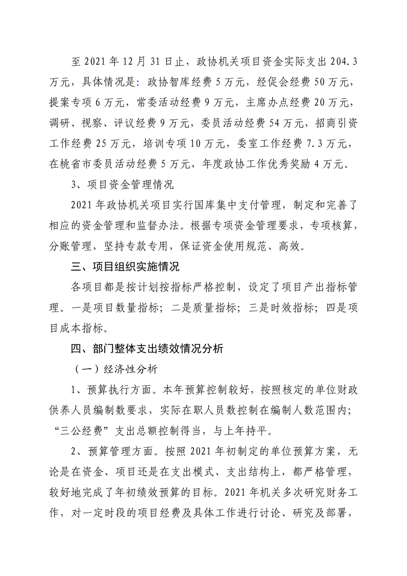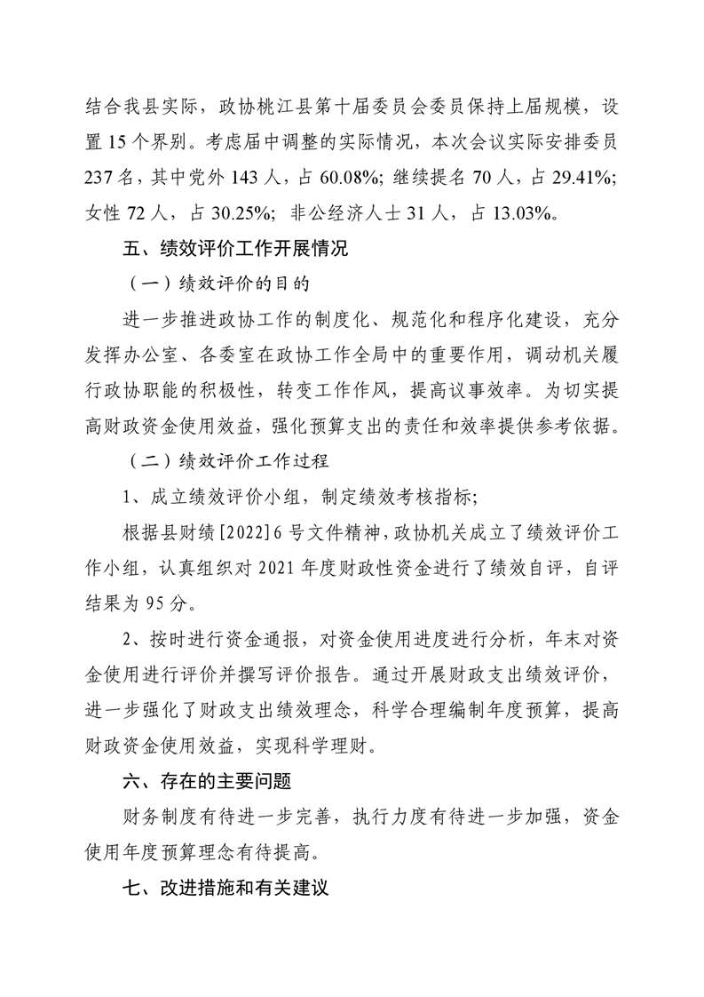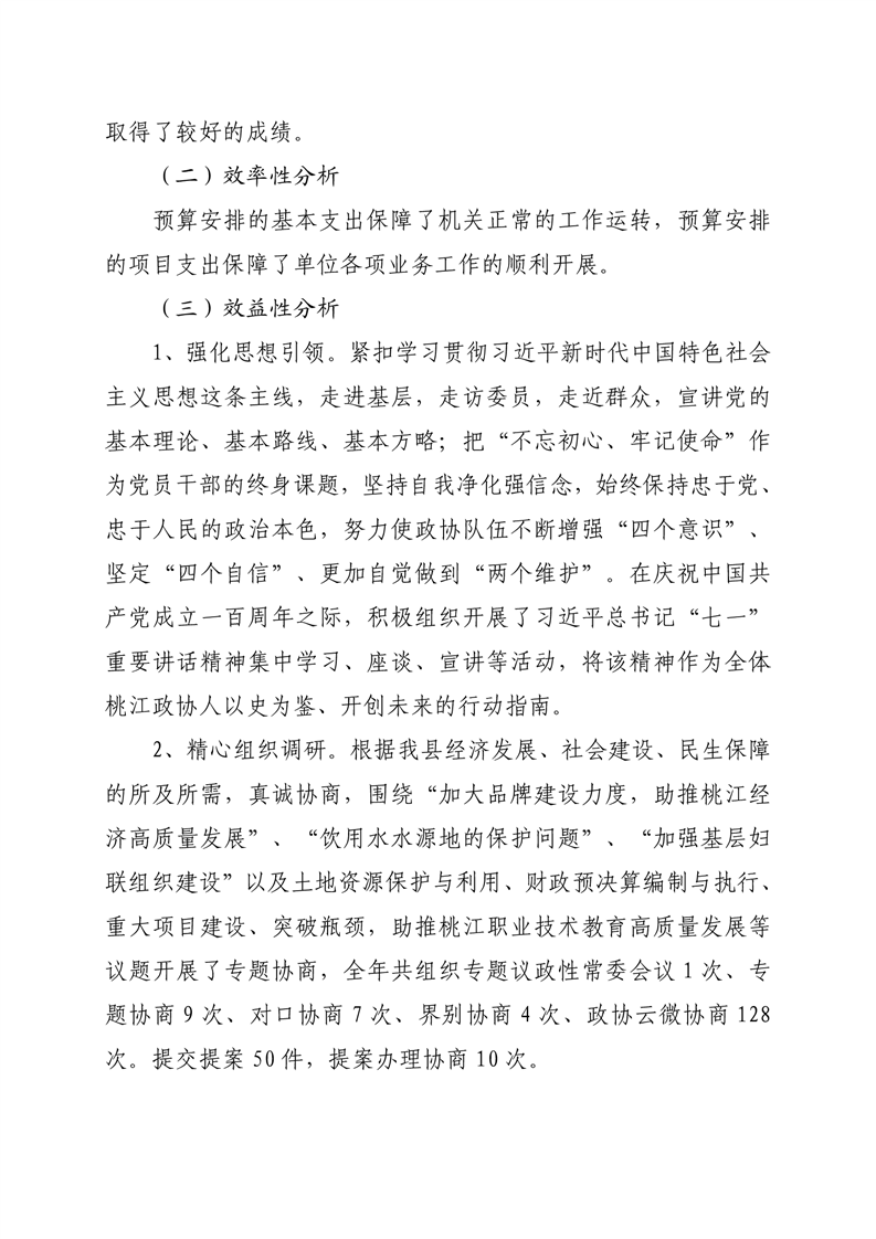 2021年桃江县政协机关绩效自评报告