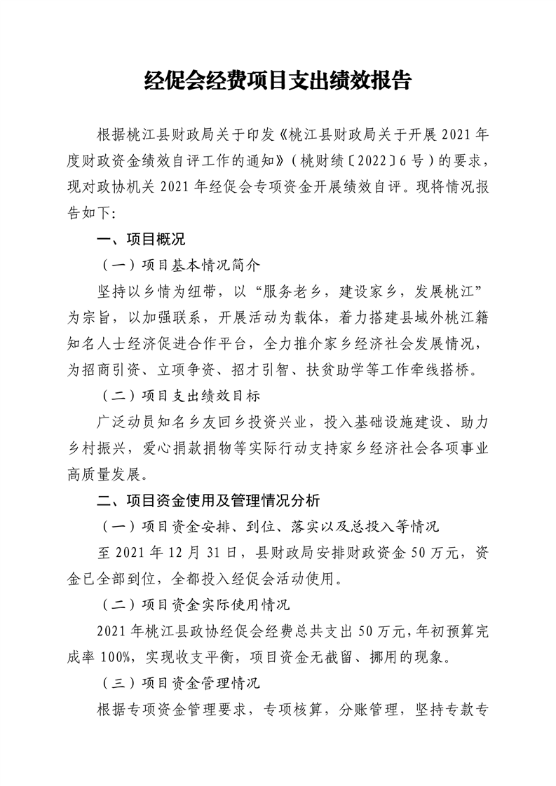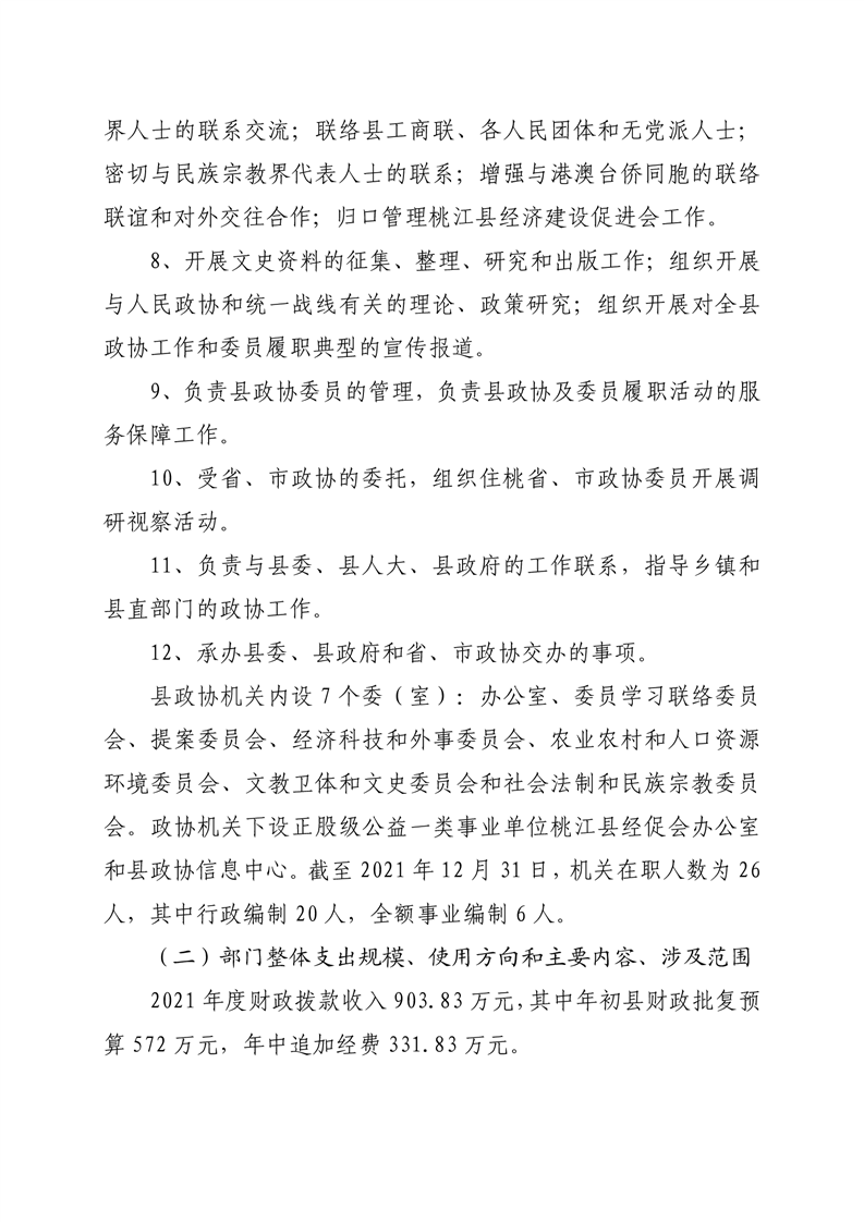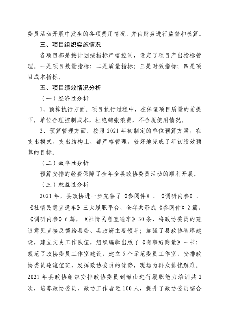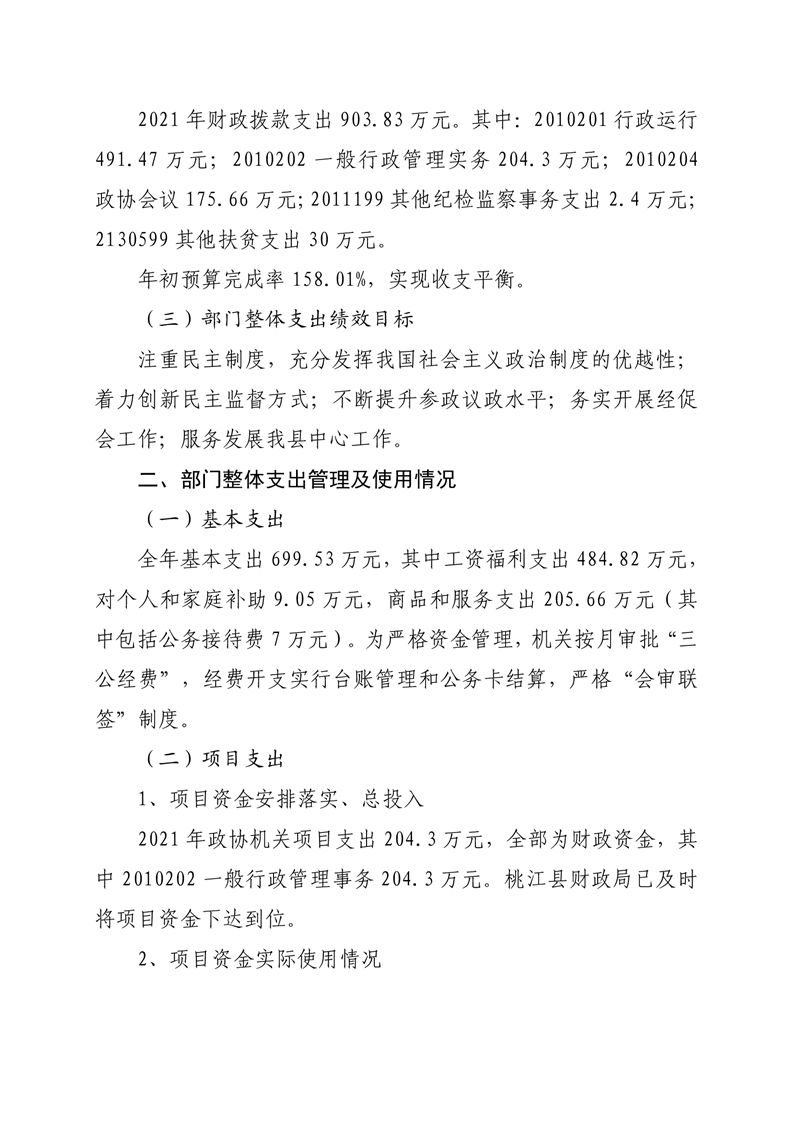 2021年桃江县政协机关绩效自评报告
