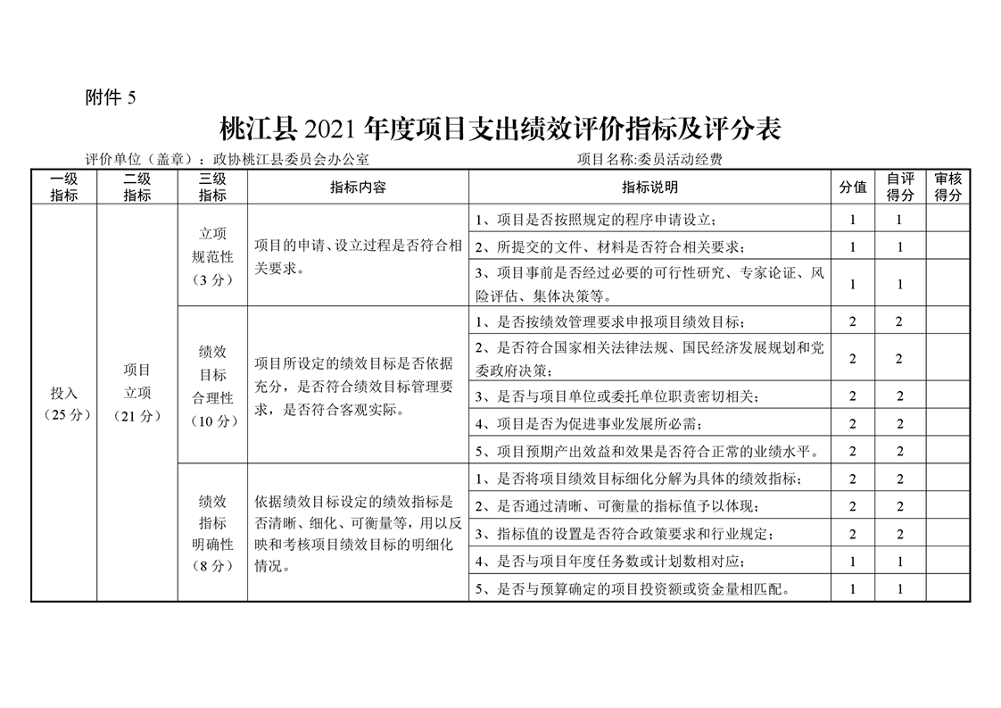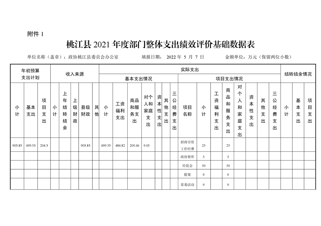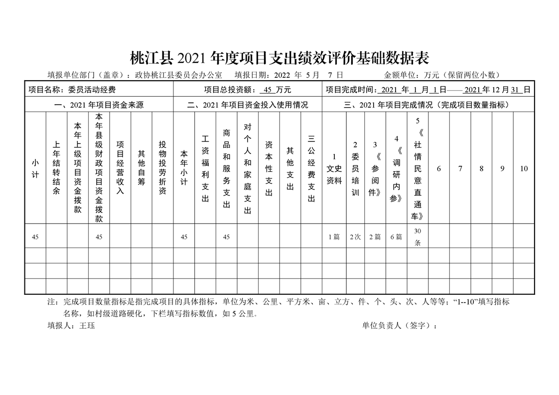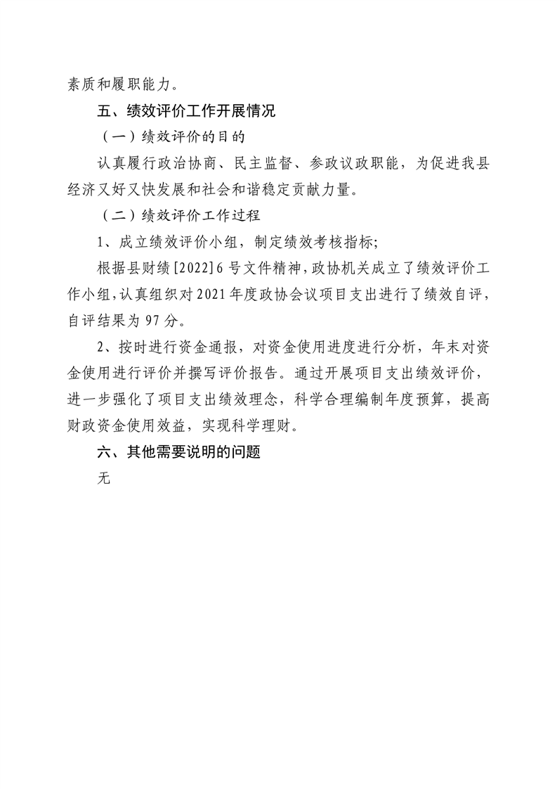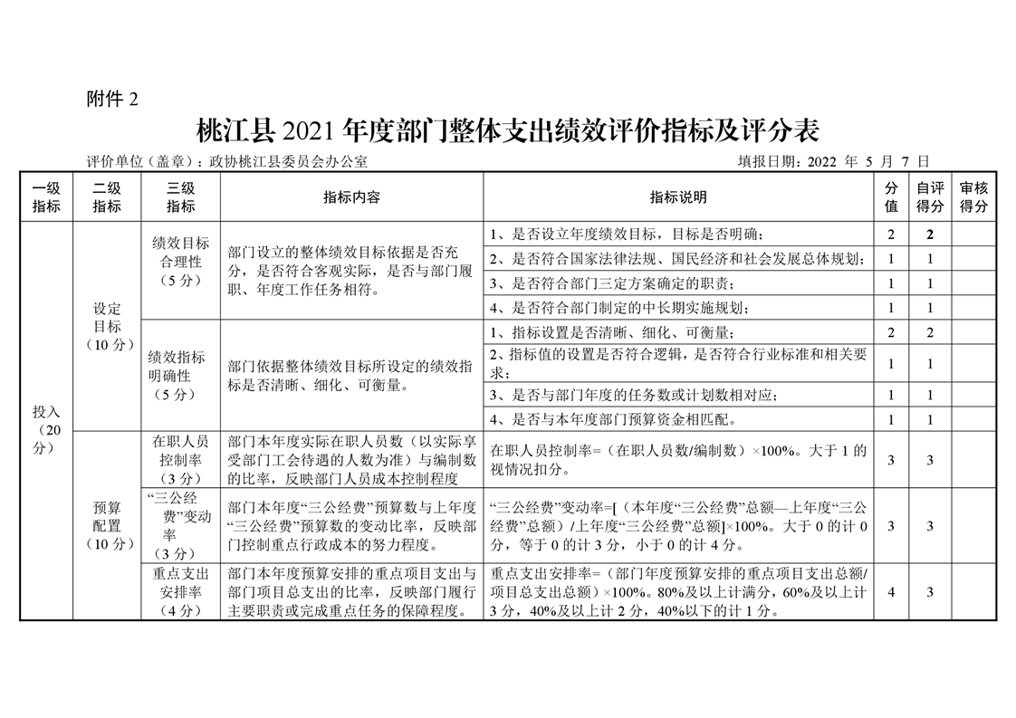 2021年桃江县政协机关绩效自评报告