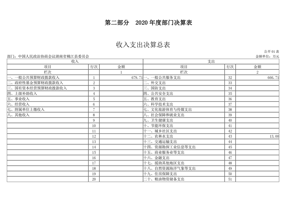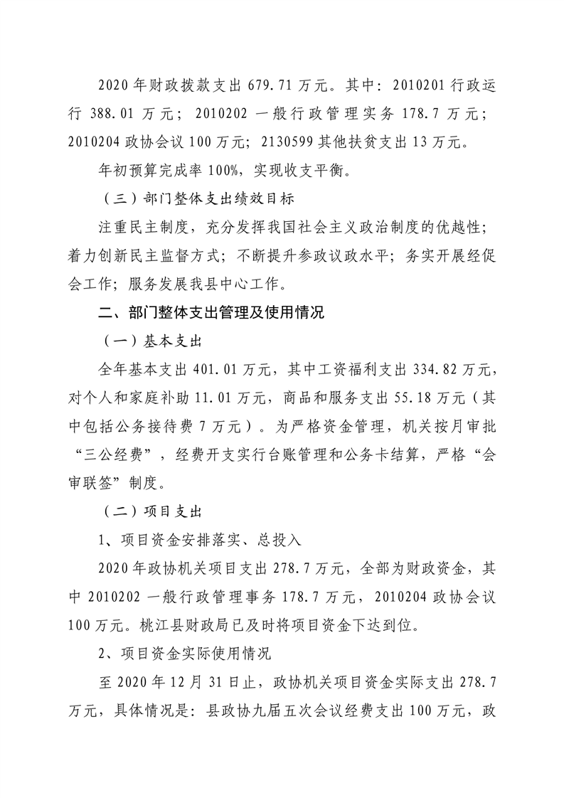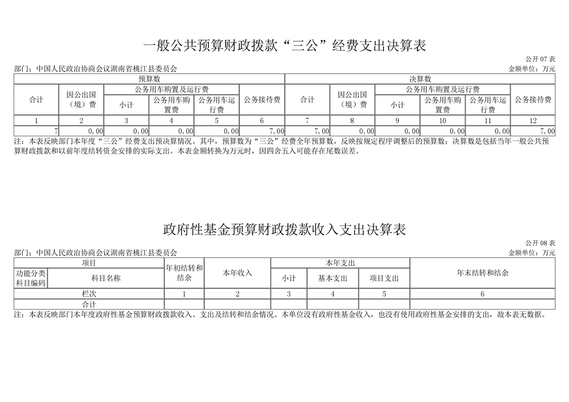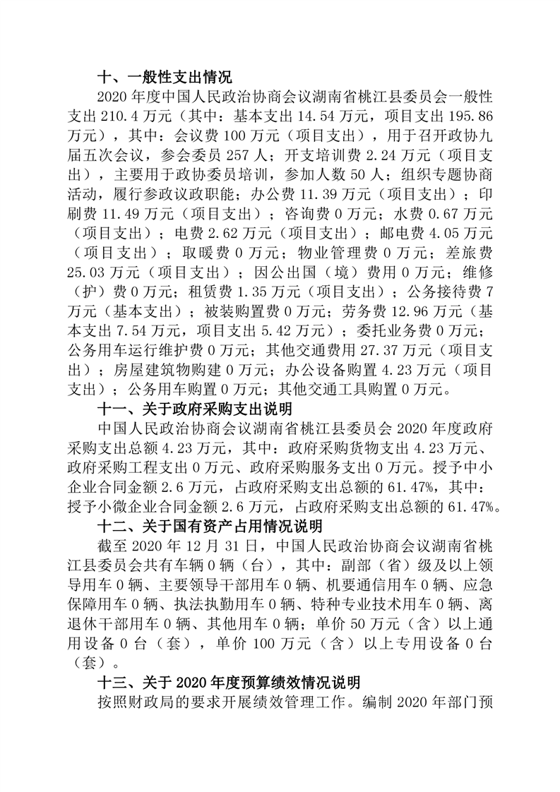2020年度中国人民政治协商会议湖南省桃江县委员会部门决算