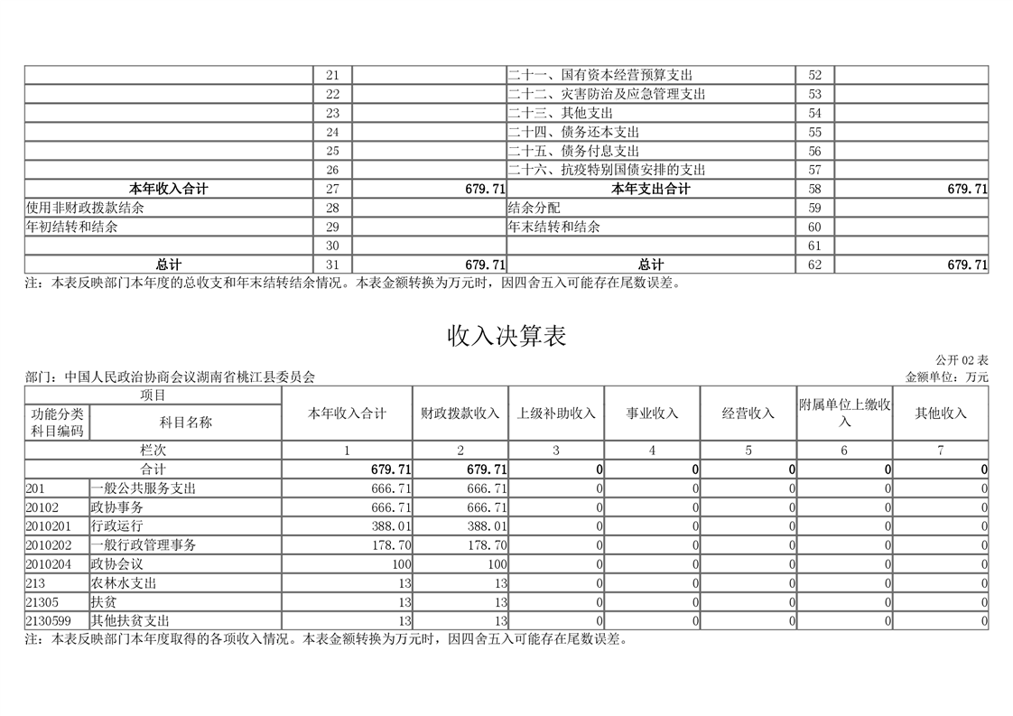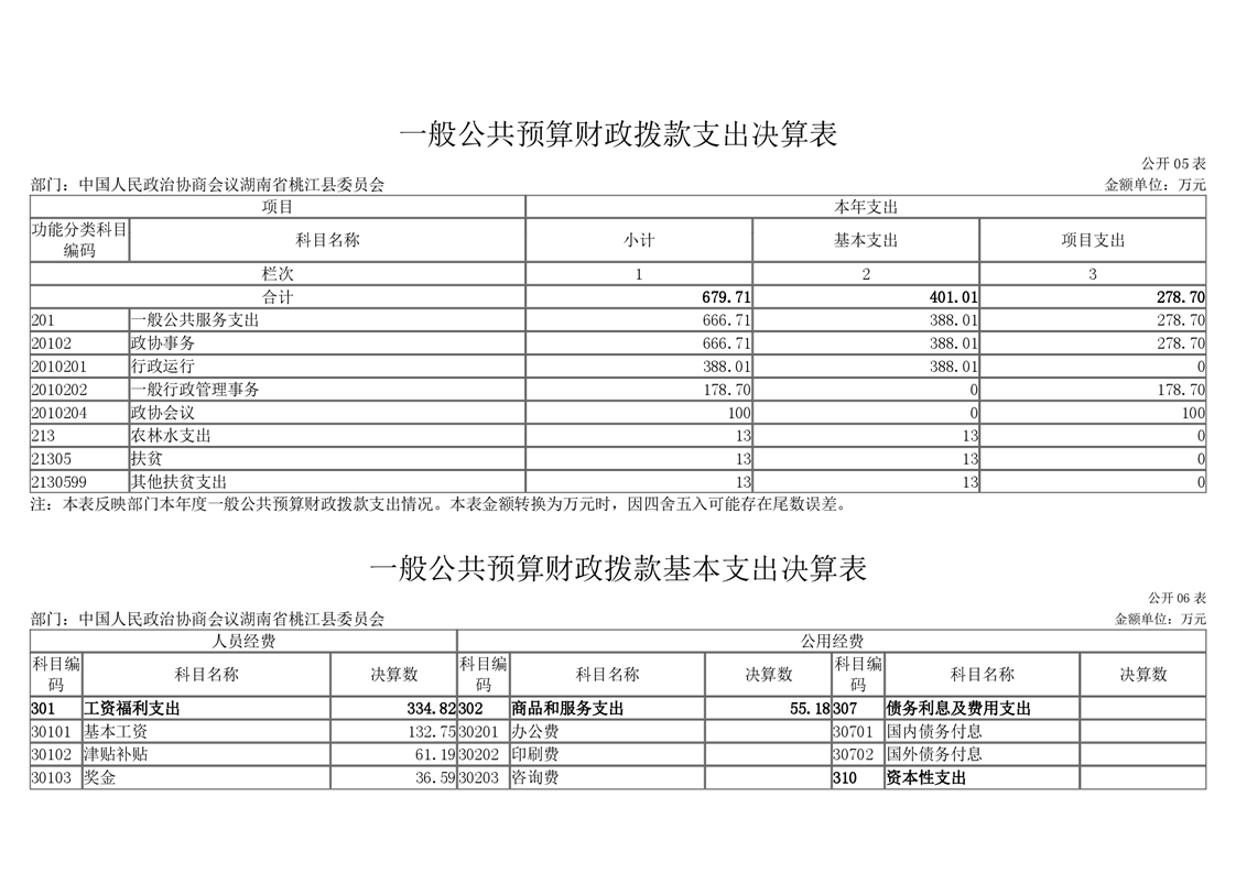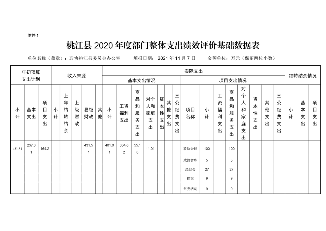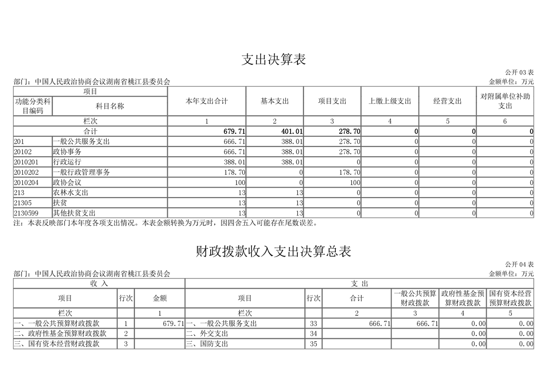 2020年度中国人民政治协商会议湖南省桃江县委员会部门决算