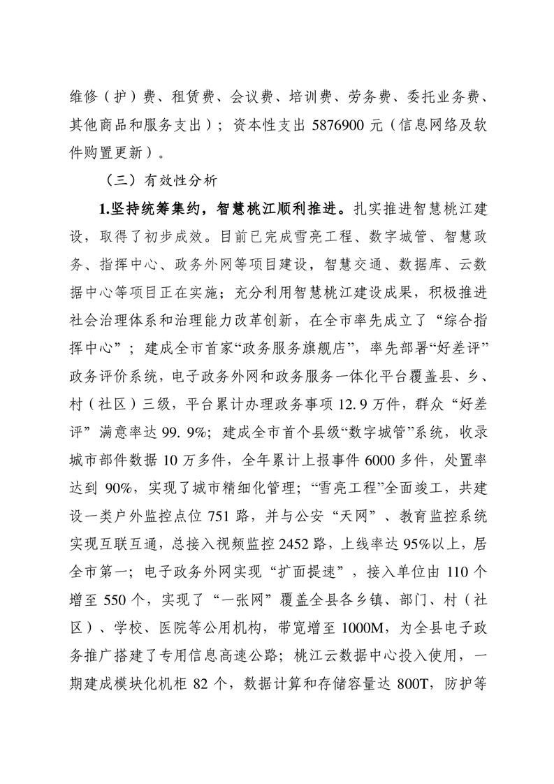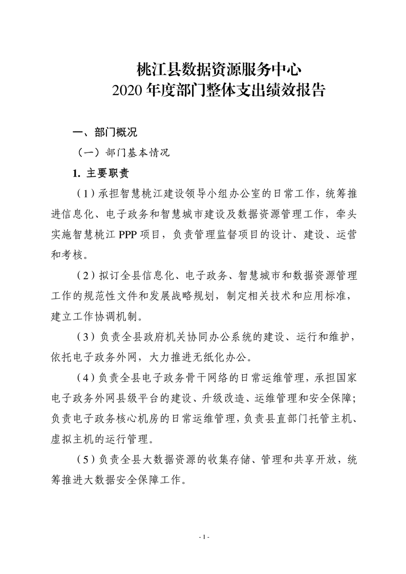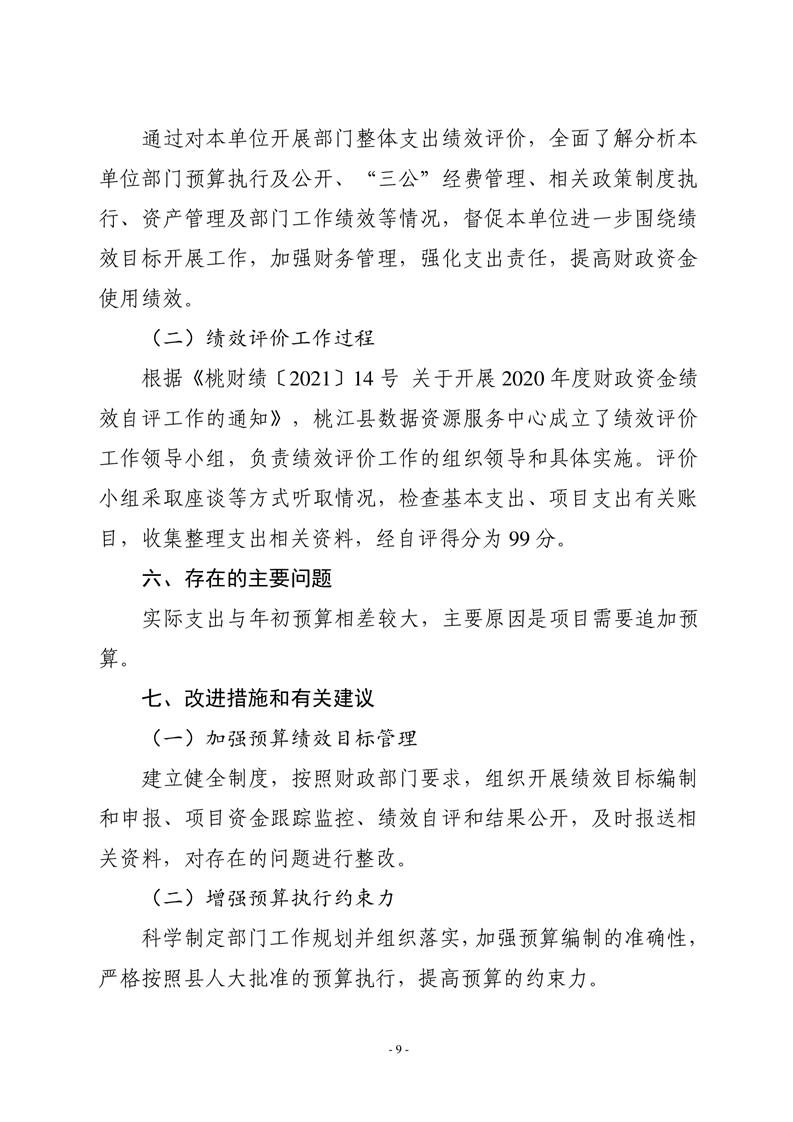 桃江县数据资源服务中心2020年度部门整体支出绩效报告
