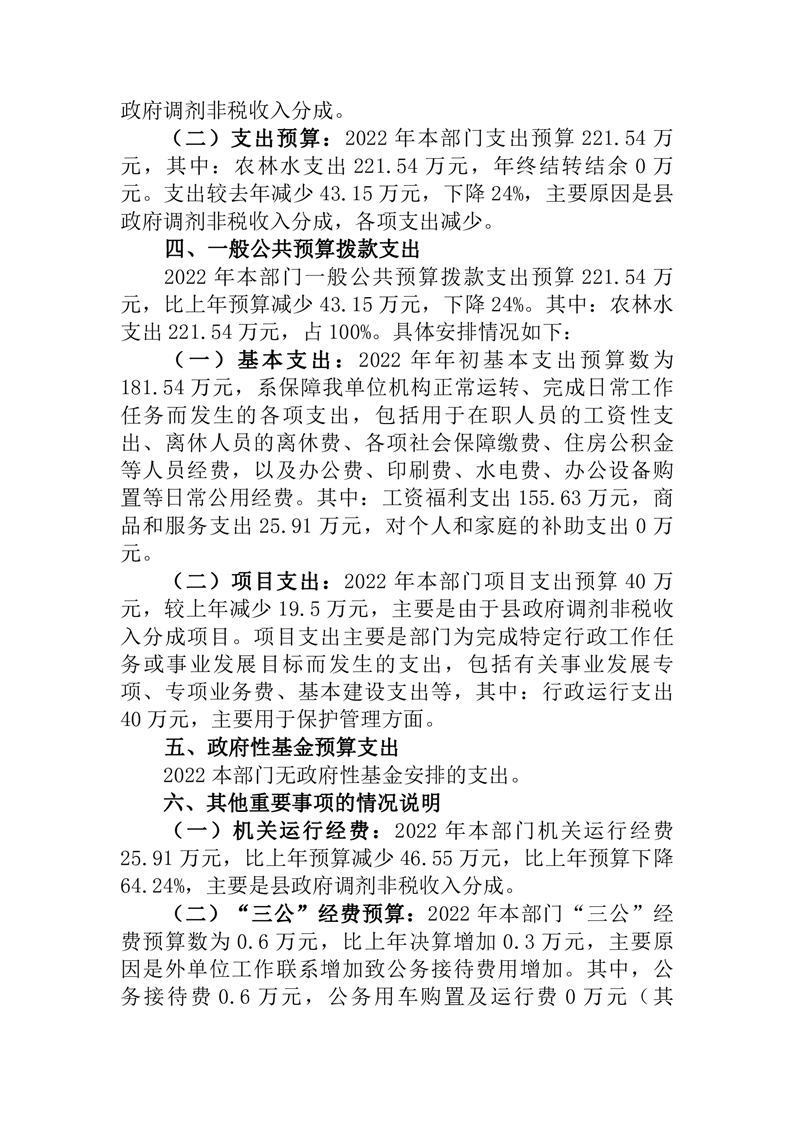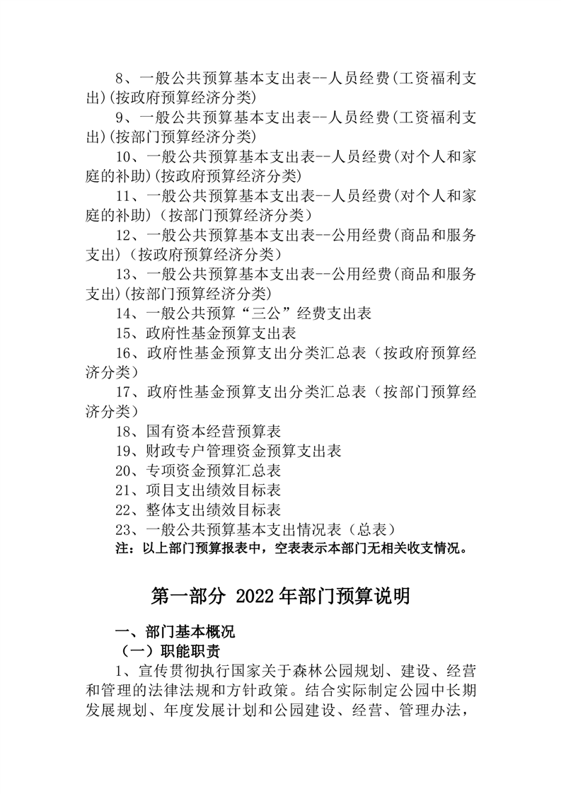 桃江县桃花江国家森林公园管理处2022年部门预算公开说明