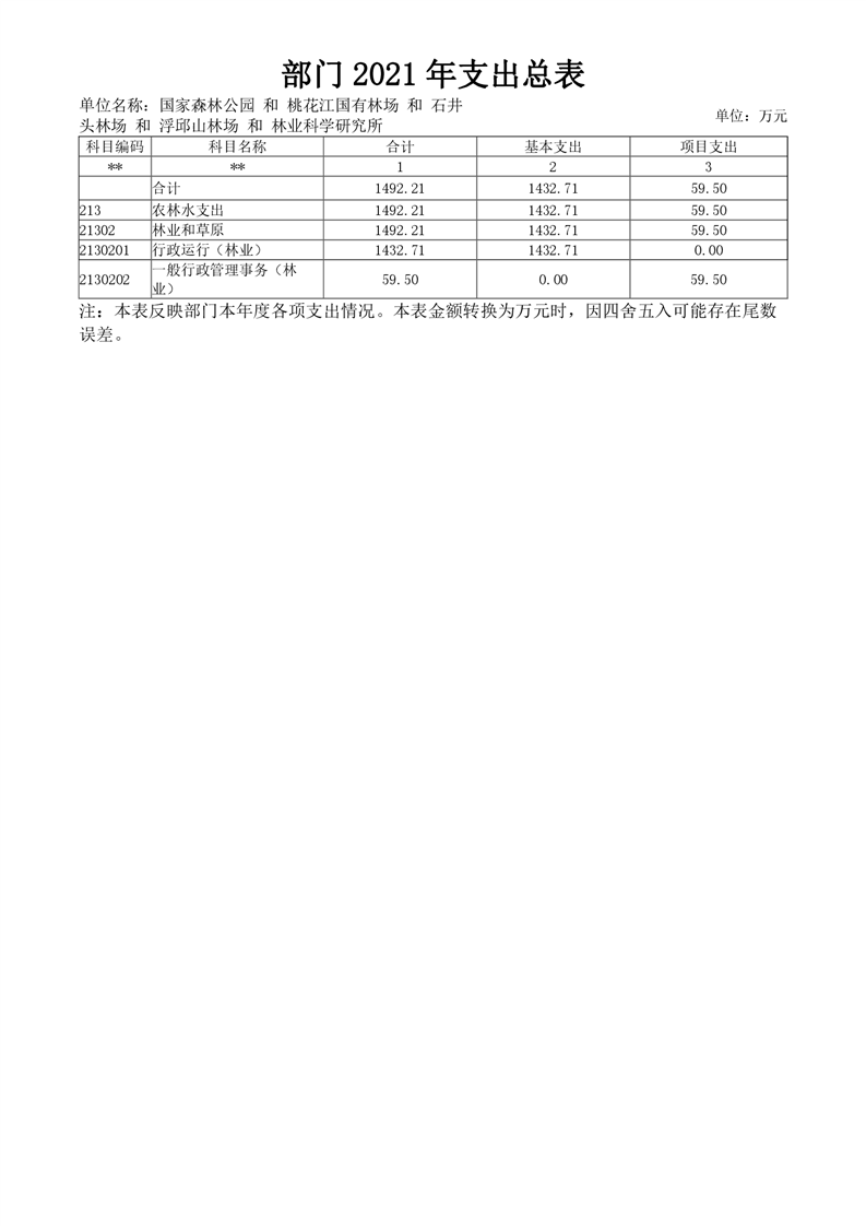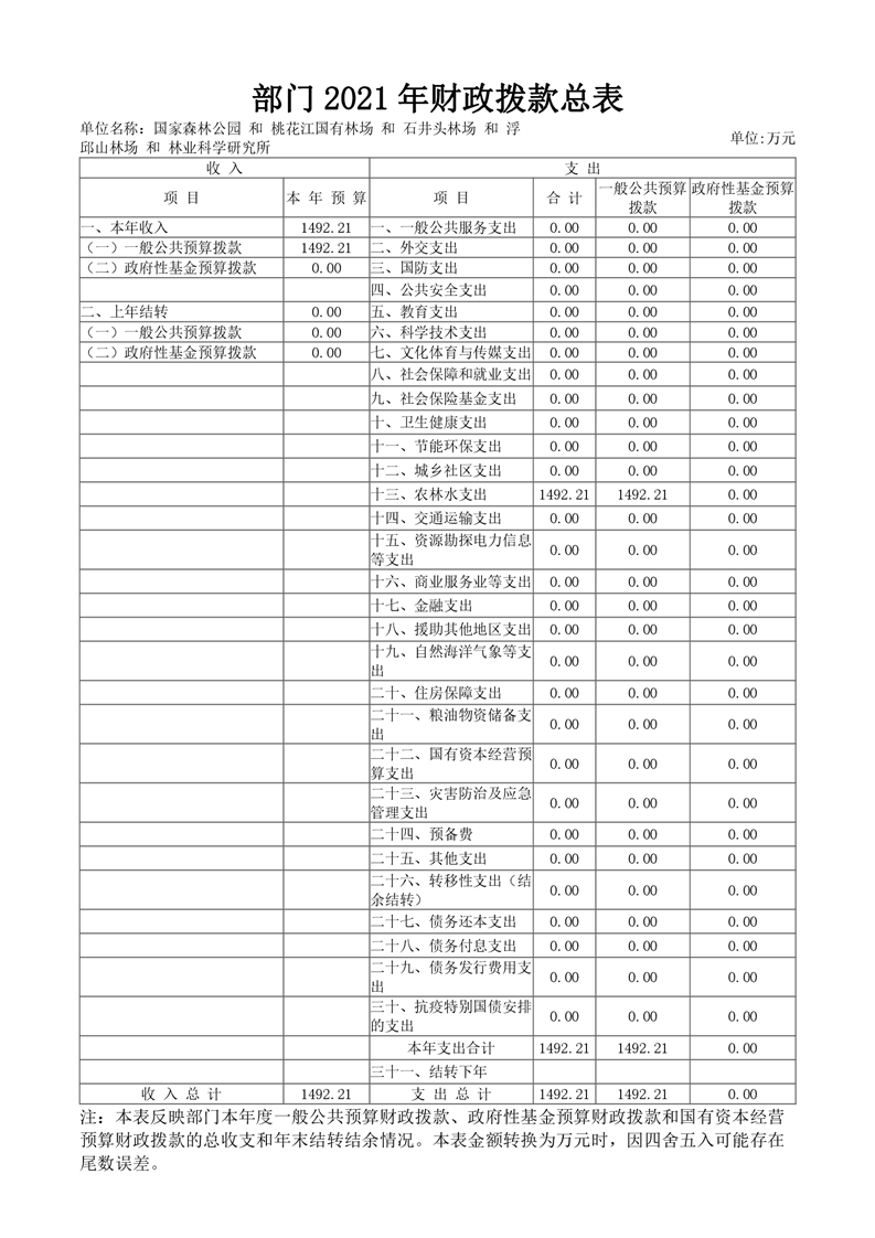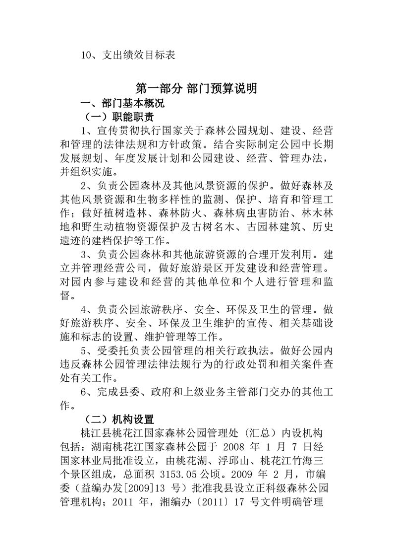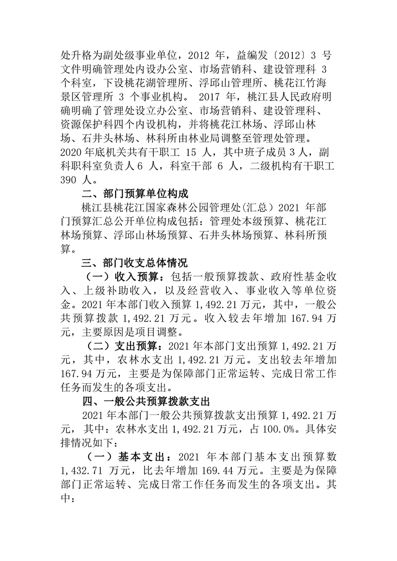 2021年桃江县桃花江国家森林公园管理处 (汇总)部门预算