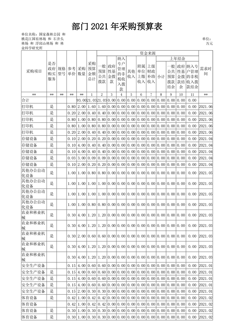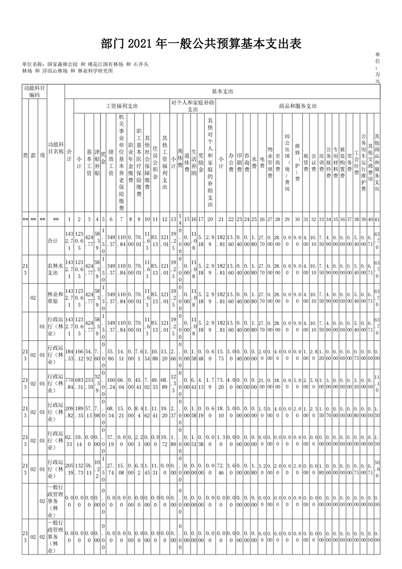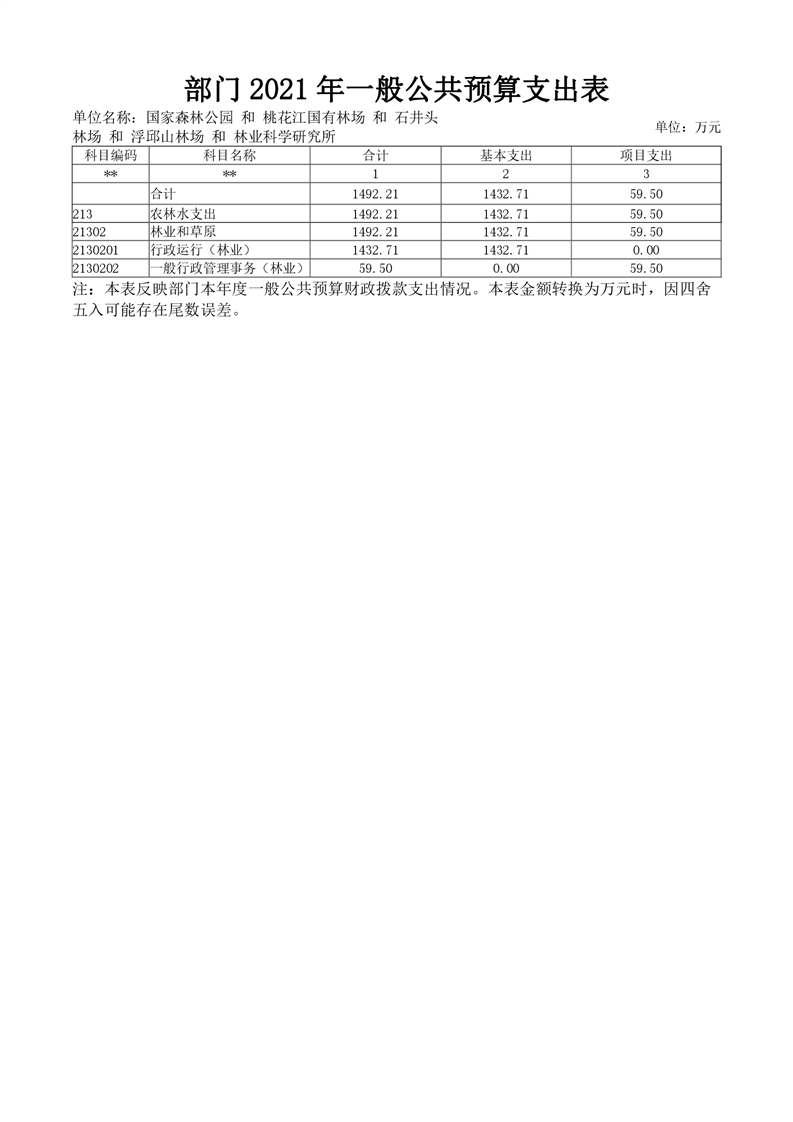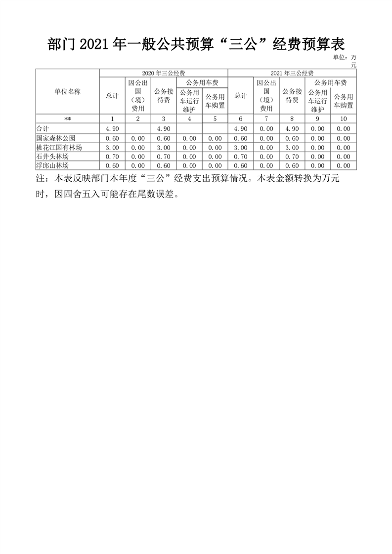 2021年桃江县桃花江国家森林公园管理处 (汇总)部门预算