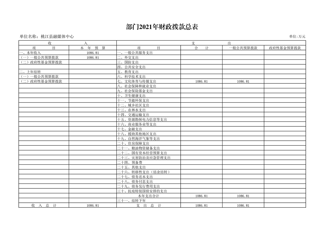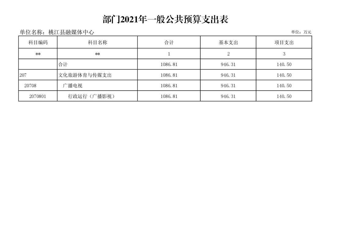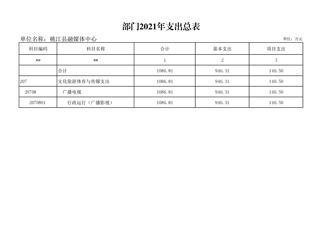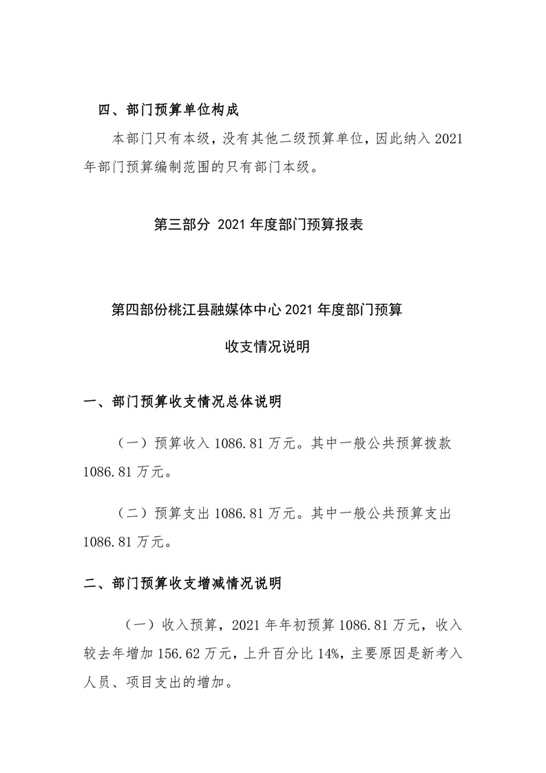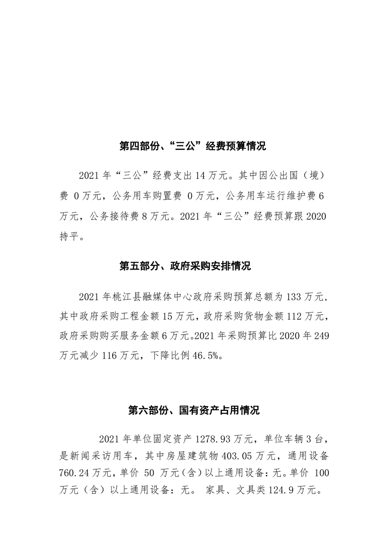 2021年桃江县融媒体中心部门预算和“三公“经费