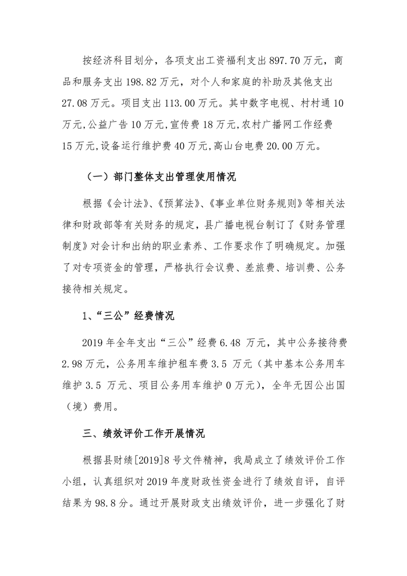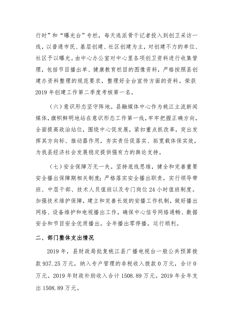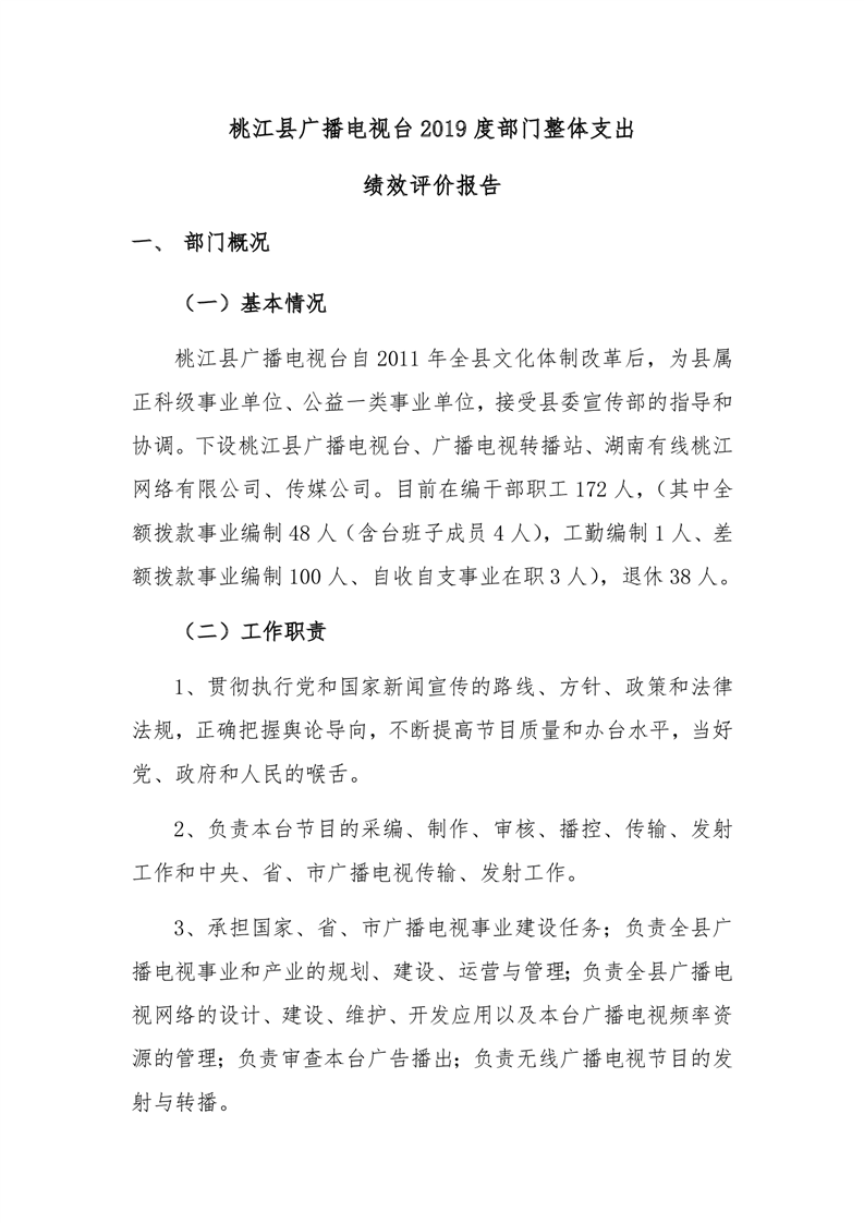 桃江县广播电视台 2019 度部门整体支出 绩效评价报告
