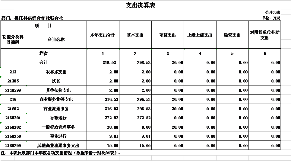 2. 项目支出20万元,占比6.2%。主要用于供销社综合改革工作的推进。