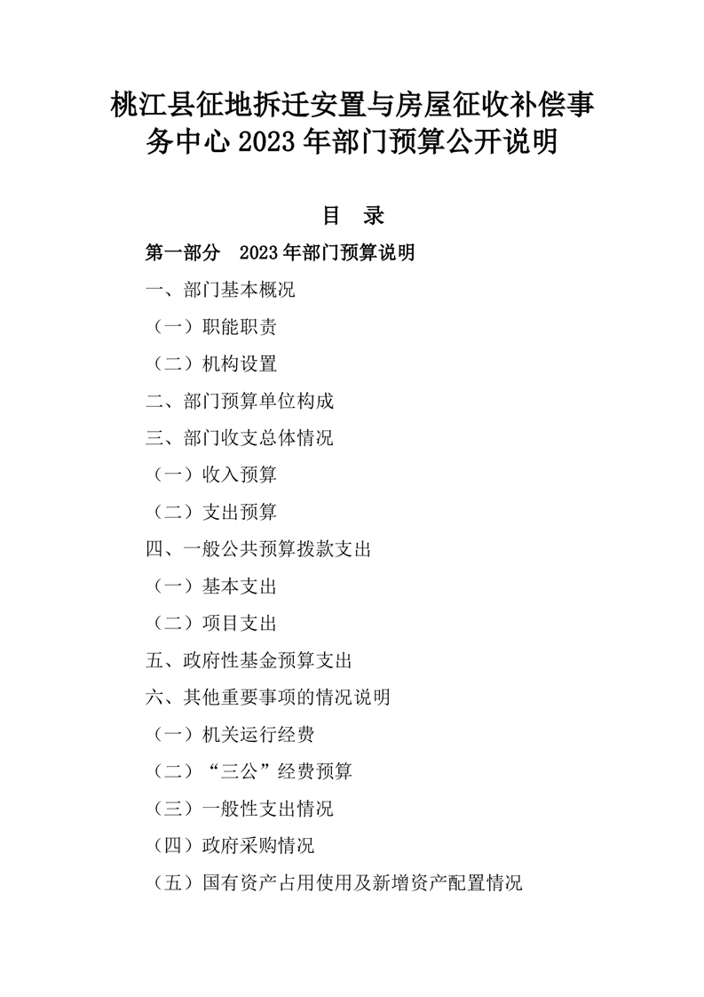 桃江县征地拆迁安置与房屋征收补偿事务中心2023年部门预算公开