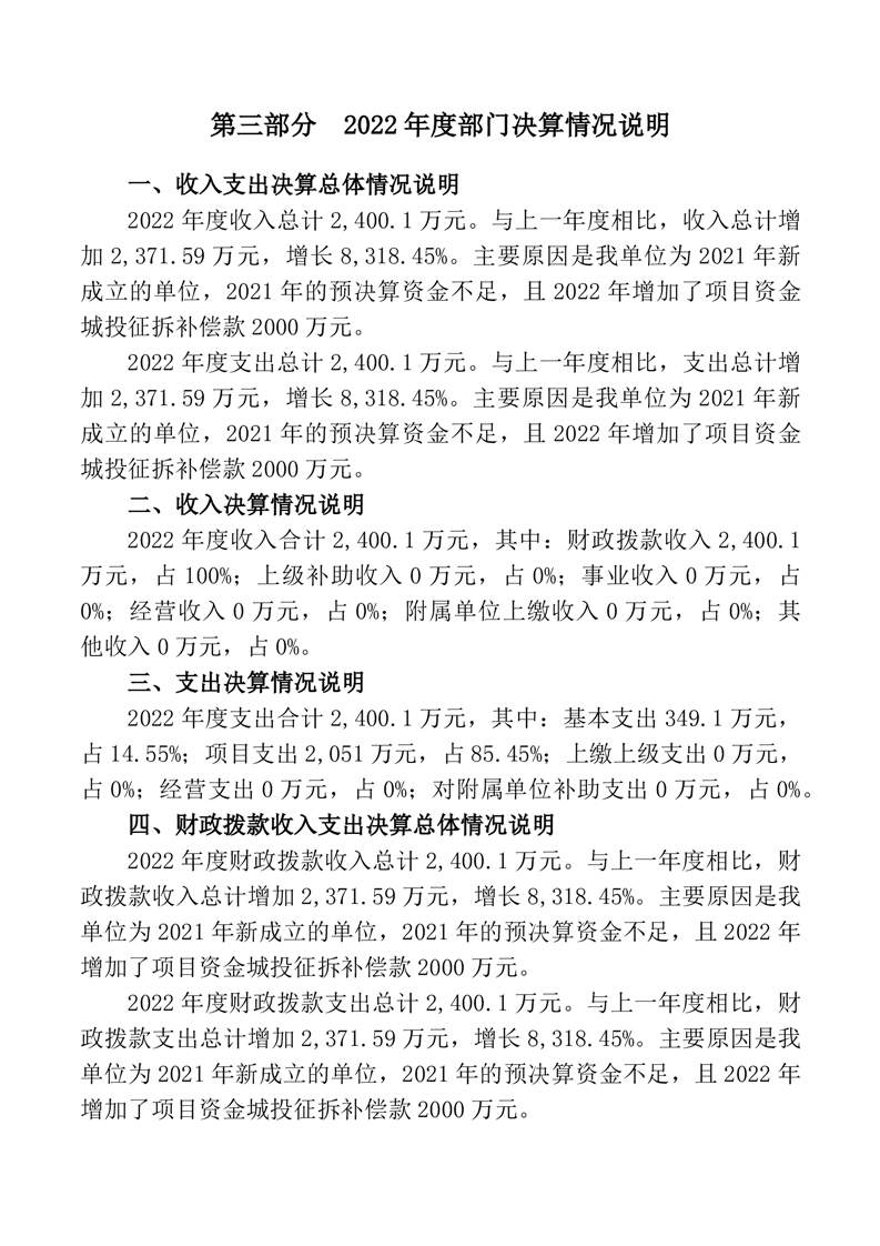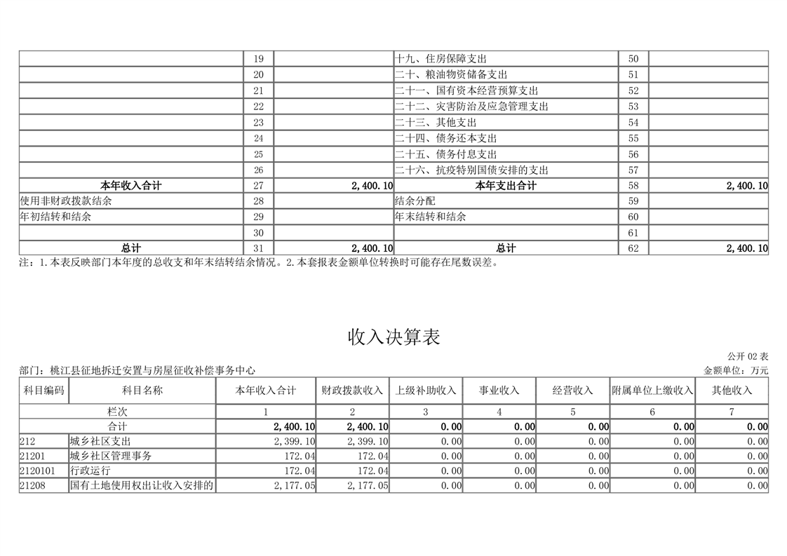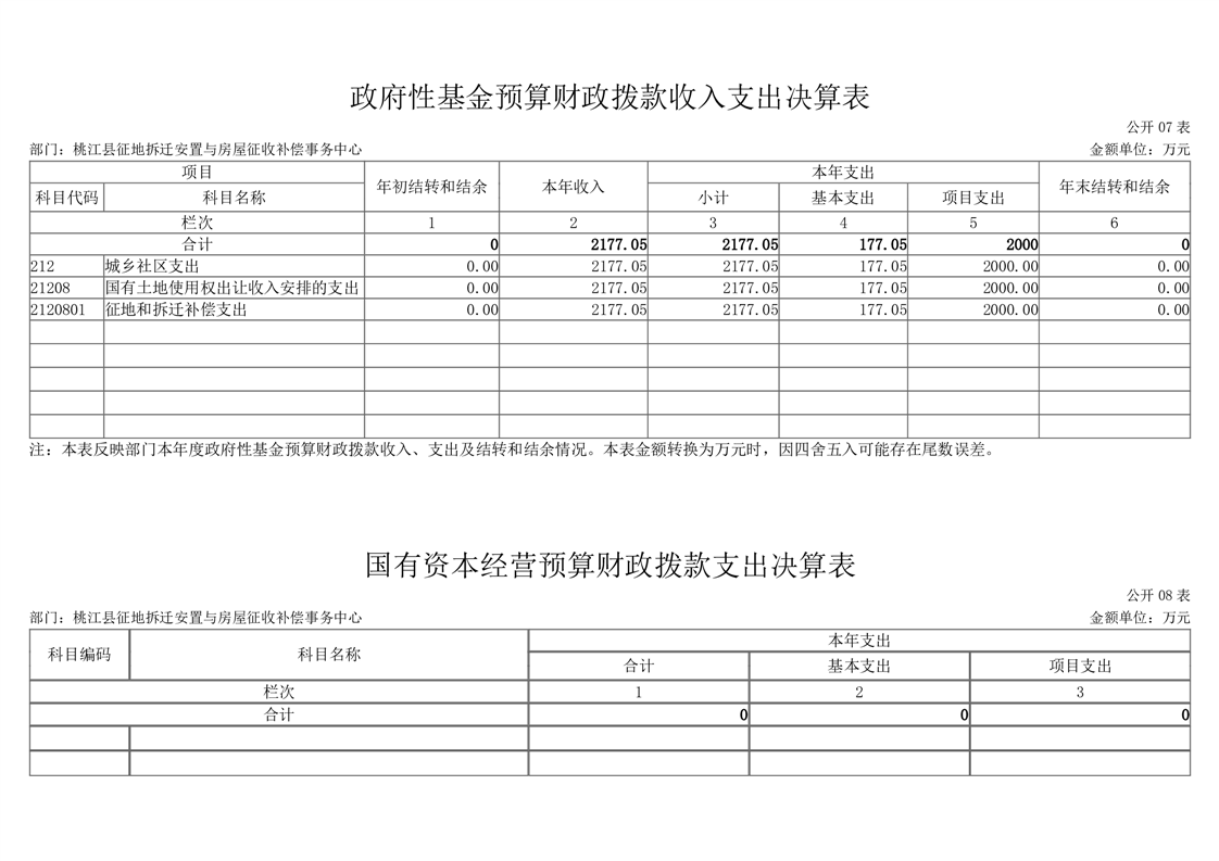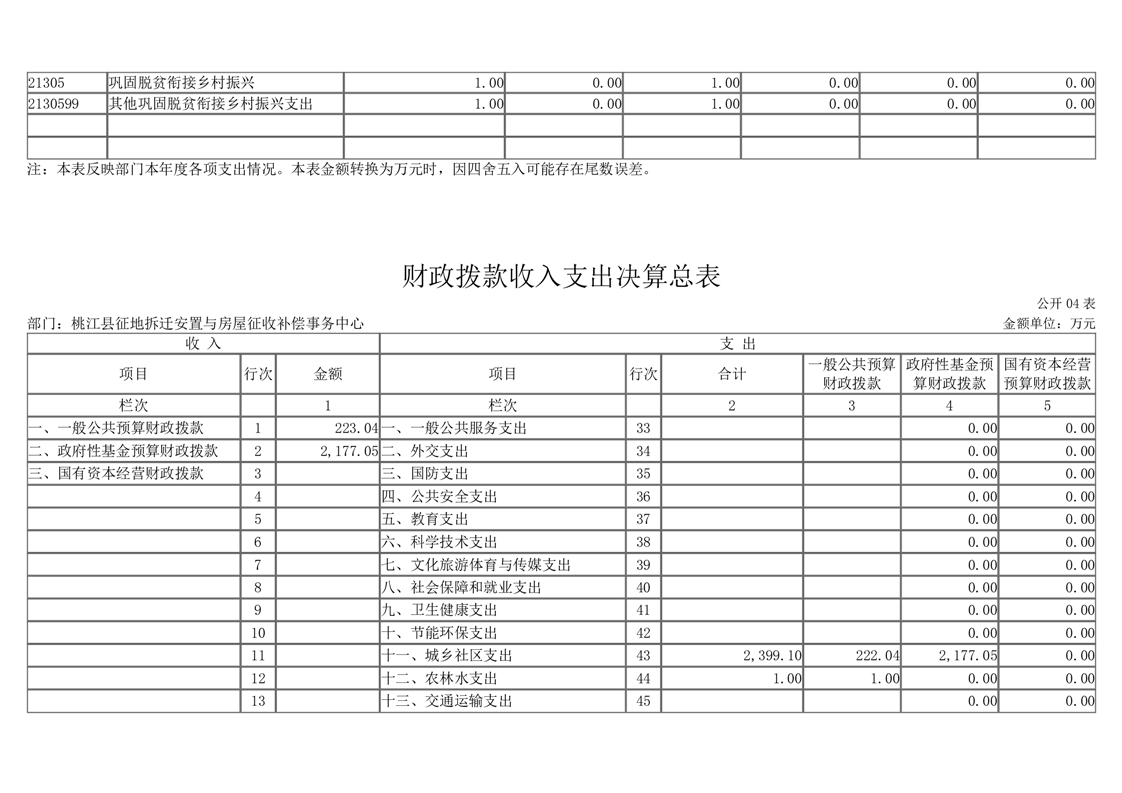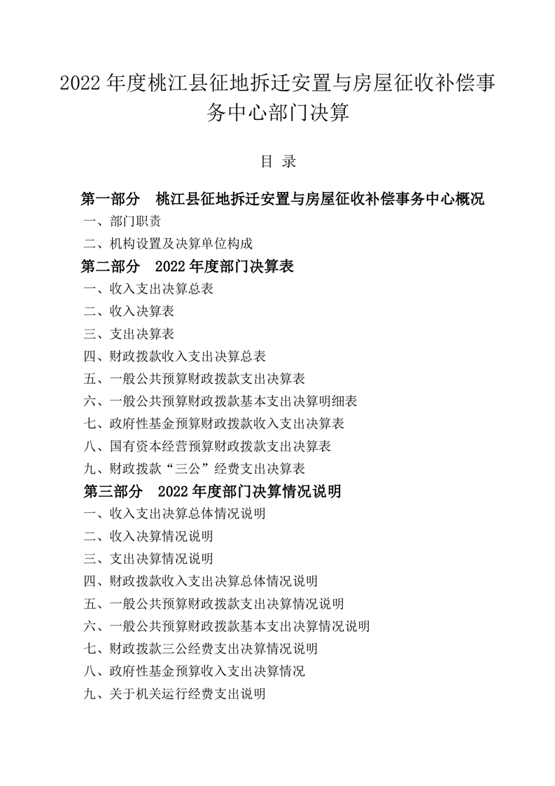 2022年度桃江县征地拆迁安置与房屋征收补偿事务中心部门决算