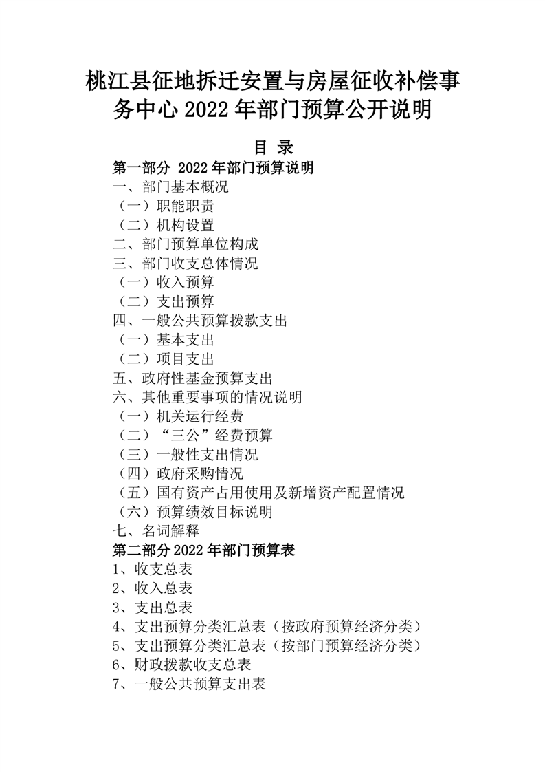 桃江县征地拆迁安置与房屋征收补偿事务中心2022年部门预算公开