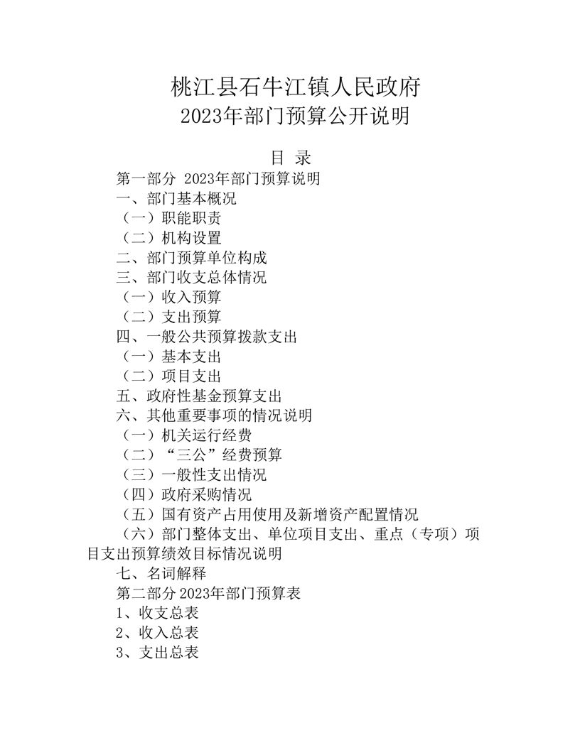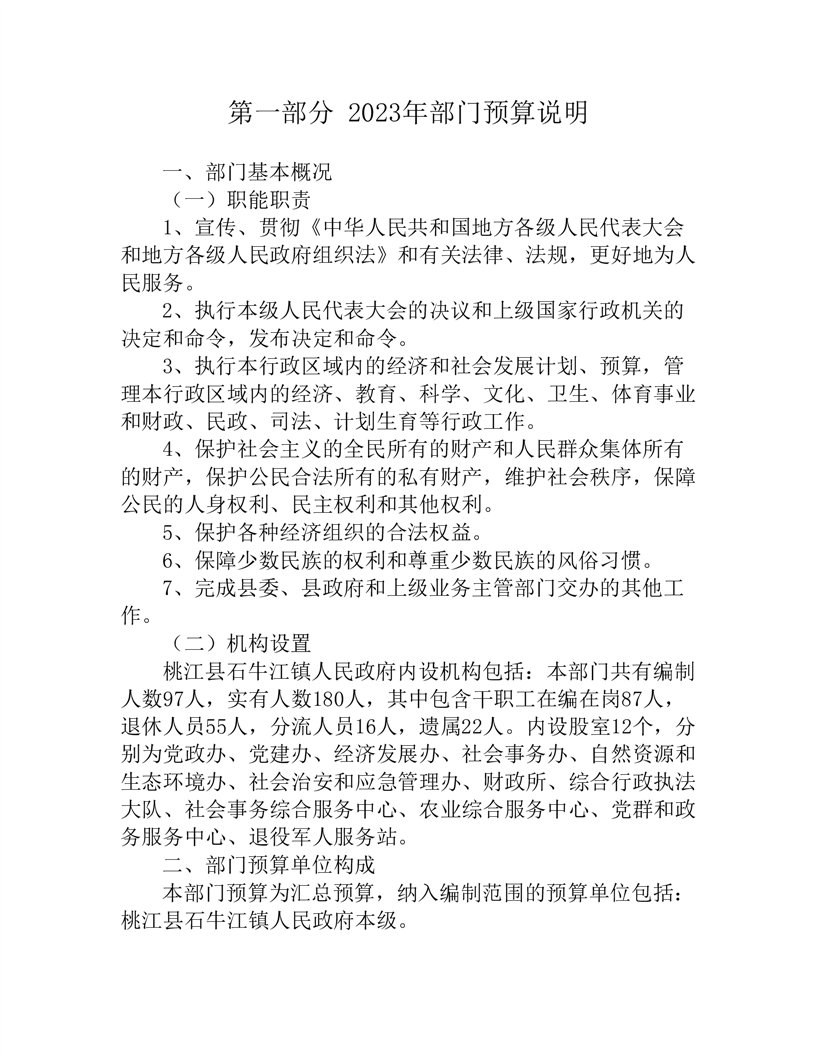 2023年度桃江县石牛江镇人民政府部门预算公开说明