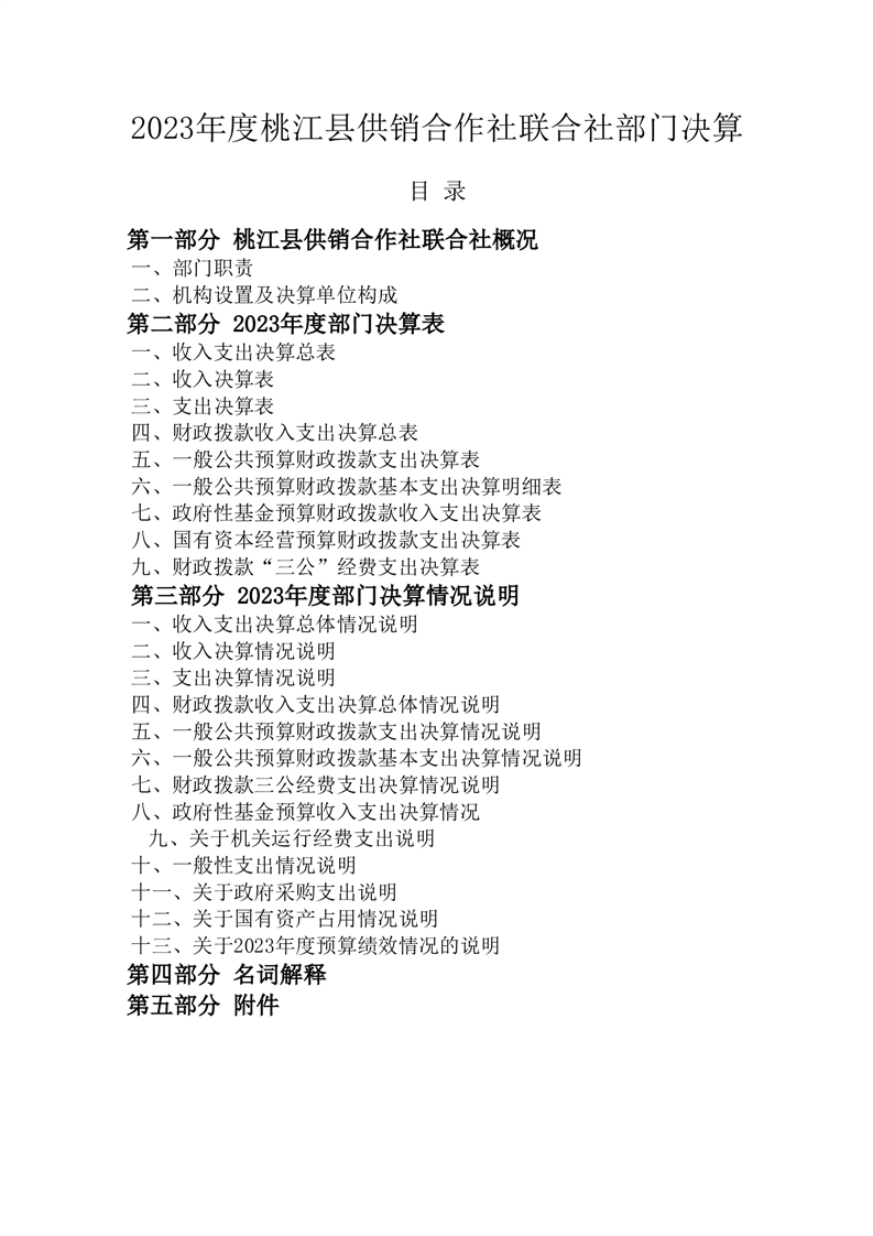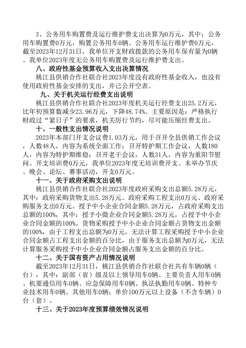 桃江县供销合作社联合社2023年部门决算公开