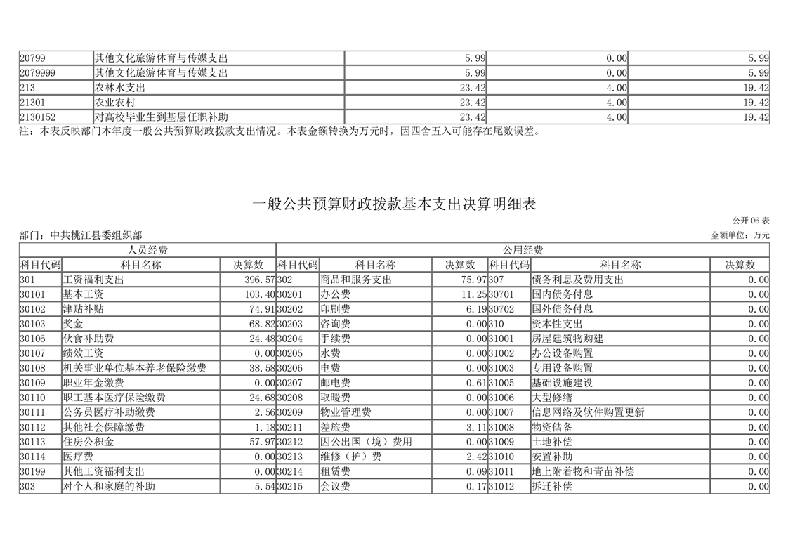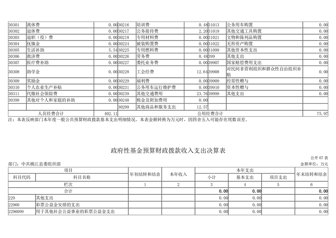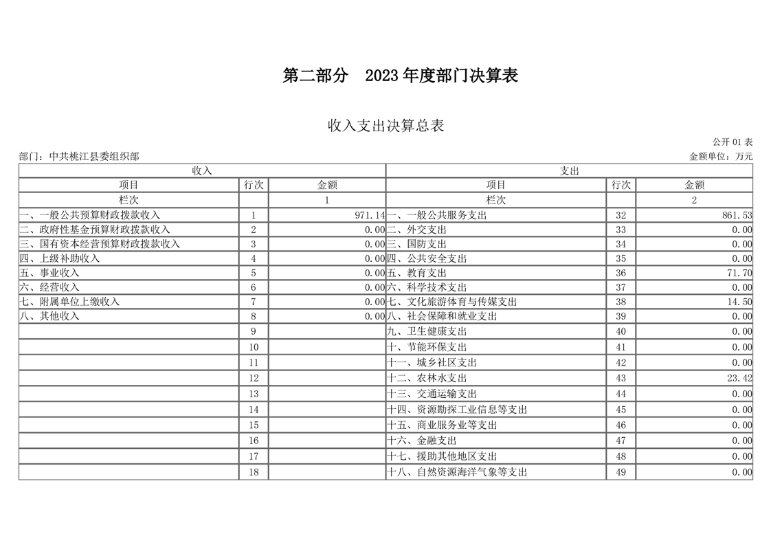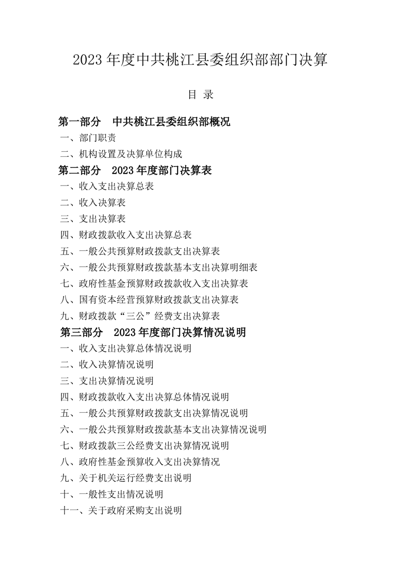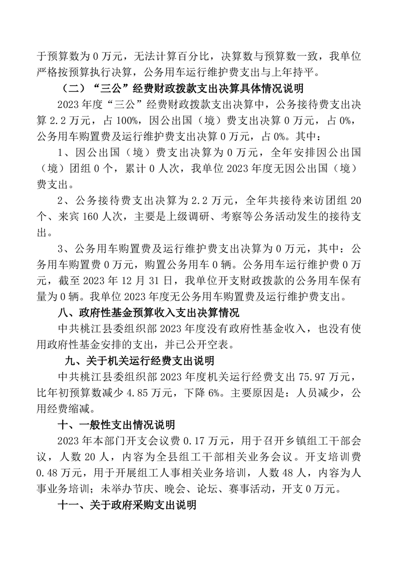 2023年度中共桃江县委组织部部门决算