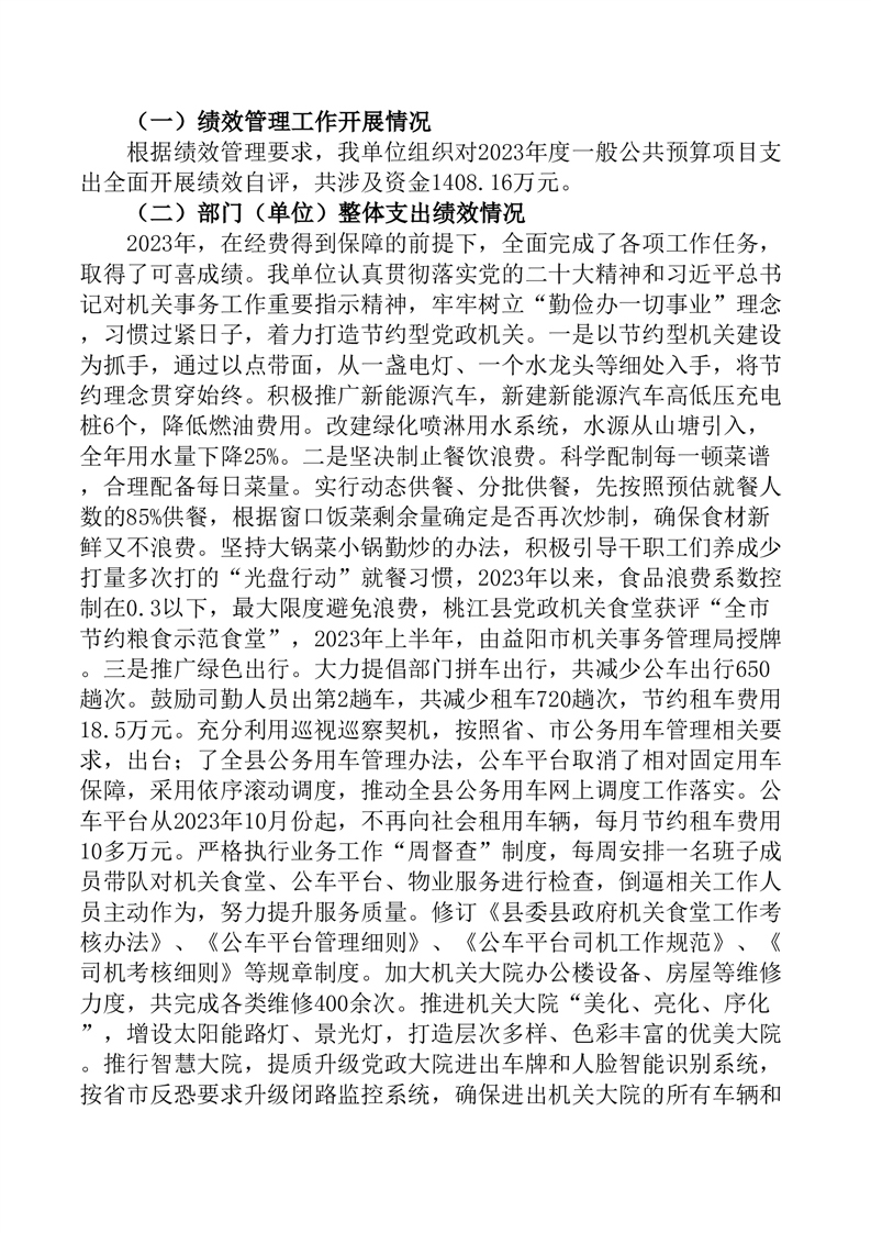 桃江县机关事务服务中心2023年整体支出绩效评价报告.doc