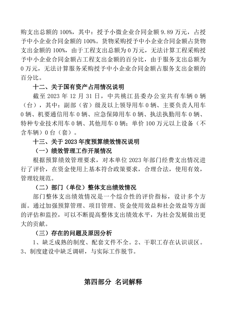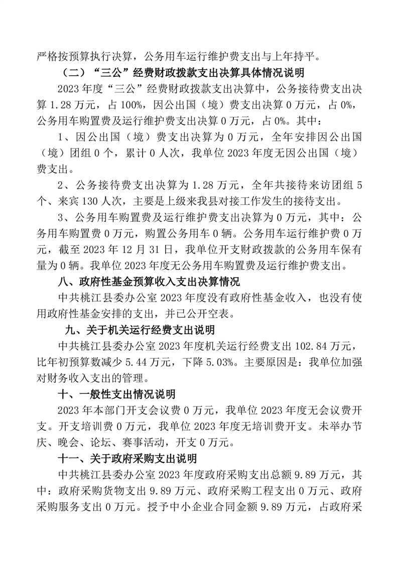 中共桃江县委办公室2023年度部门整体支出绩效报告.doc