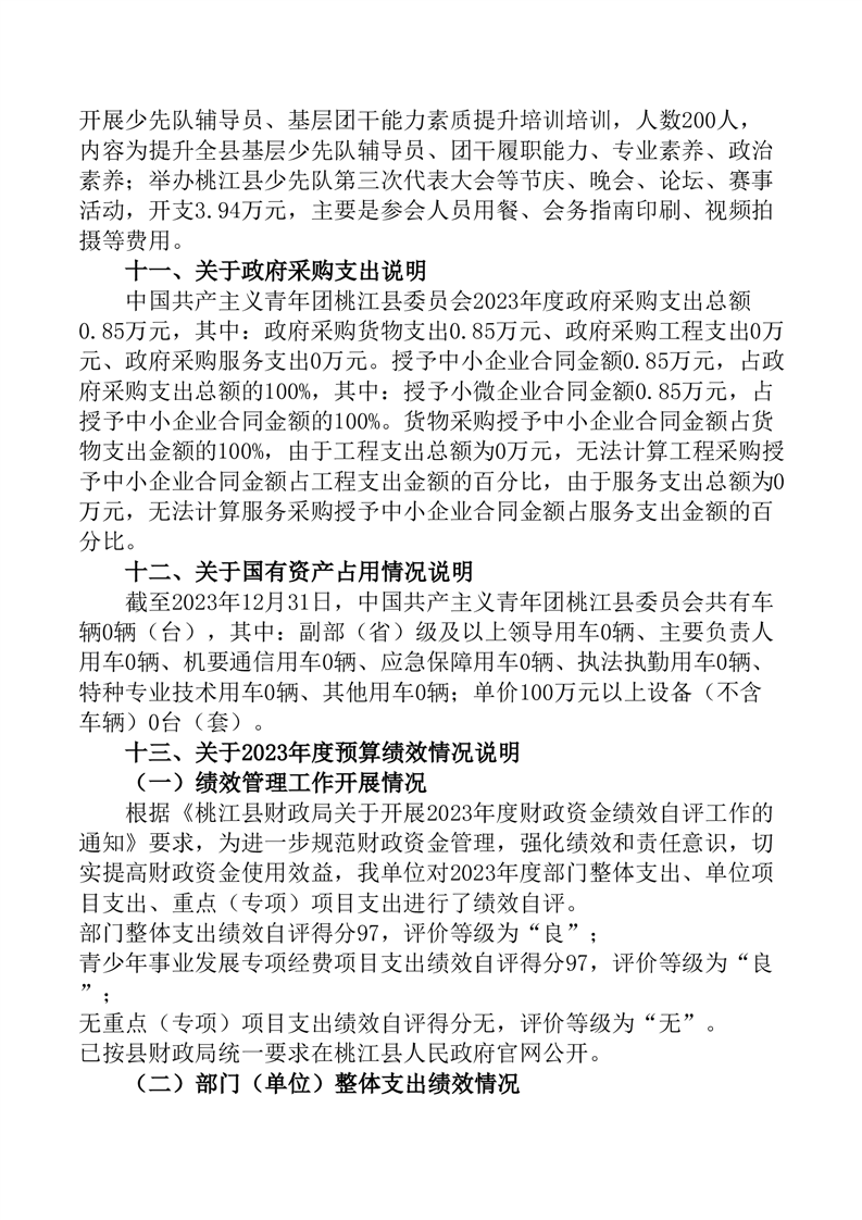 共青团桃江县委2023年部门整体支出绩效评价报告.doc