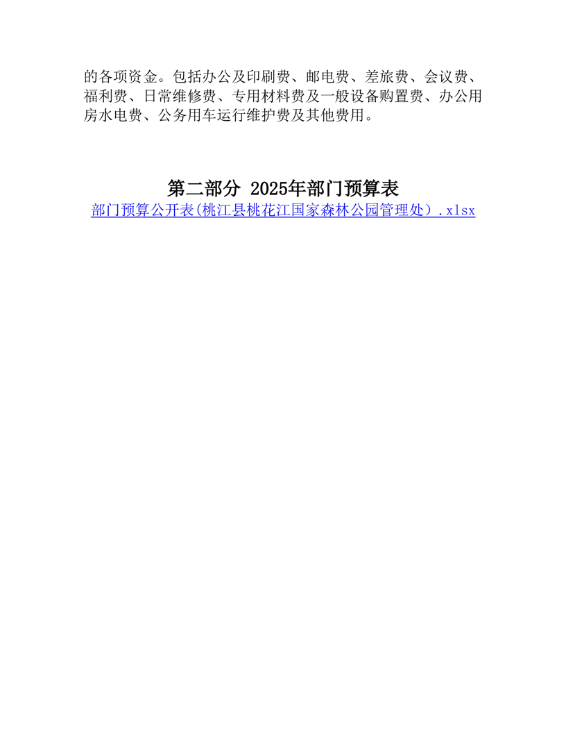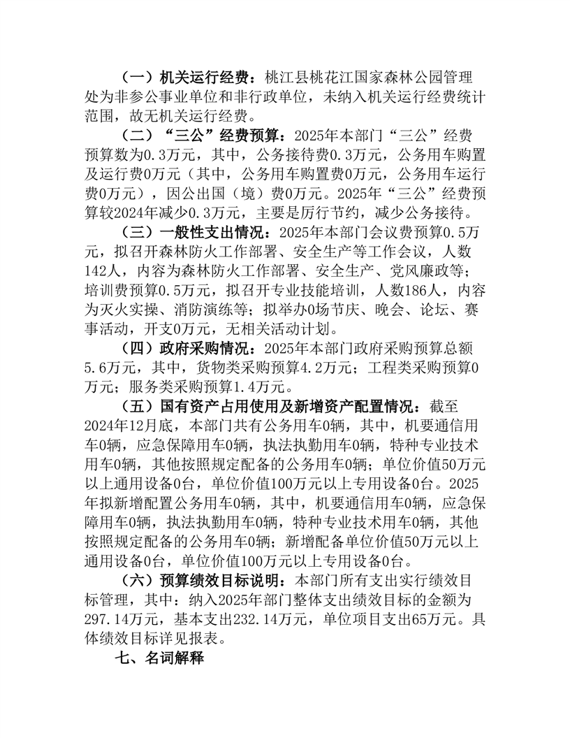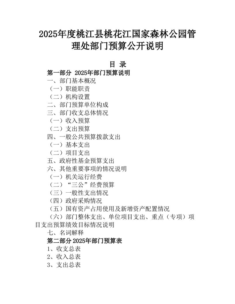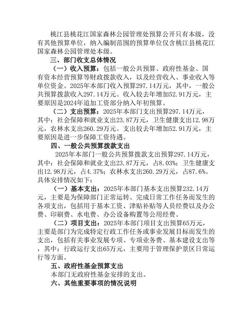 2025年度桃江县桃花江国家森林公园管理处部门预算公开说明