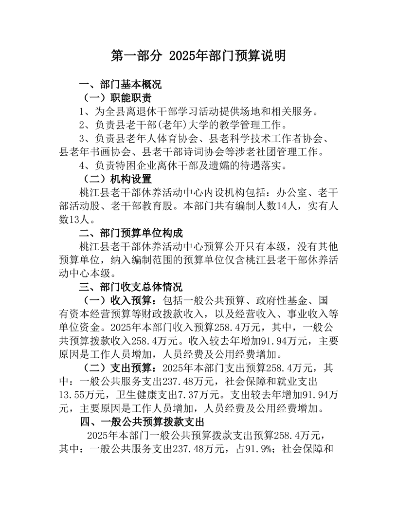 2025年度桃江县老干部休养活动中心部门预算公开说明