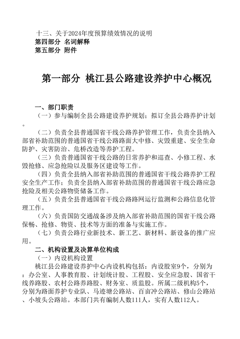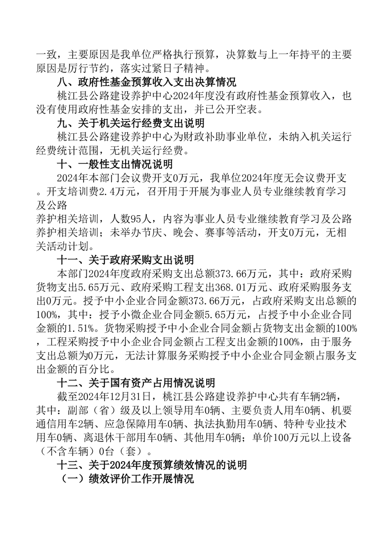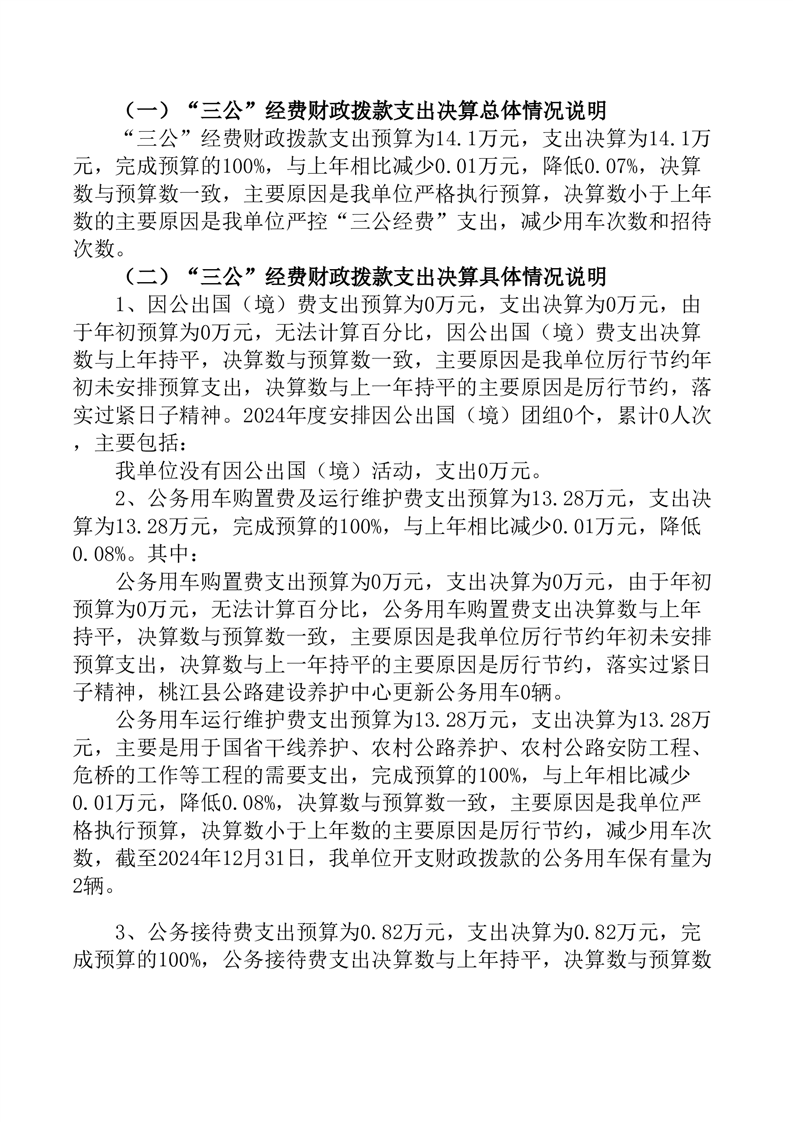 桃江县公路建设养护中心2024年部门决算公开说明