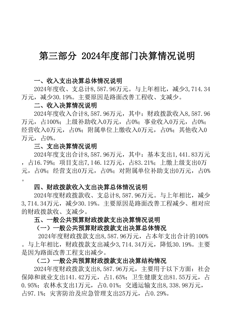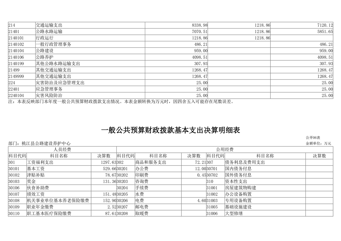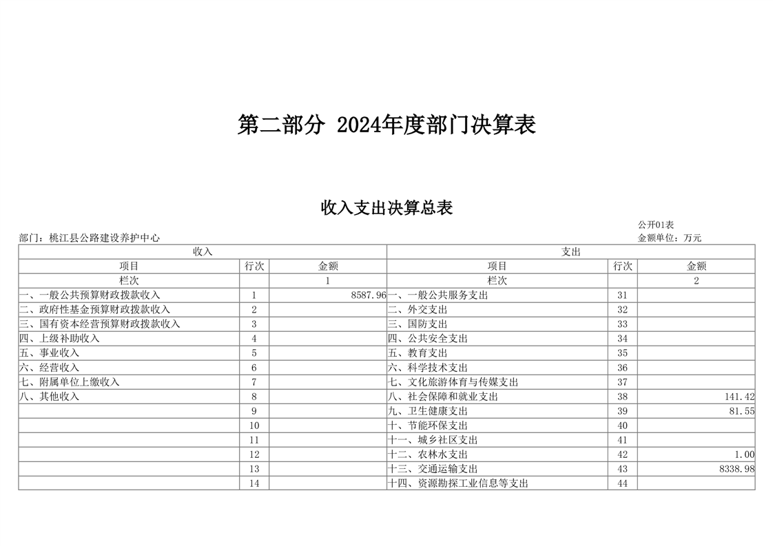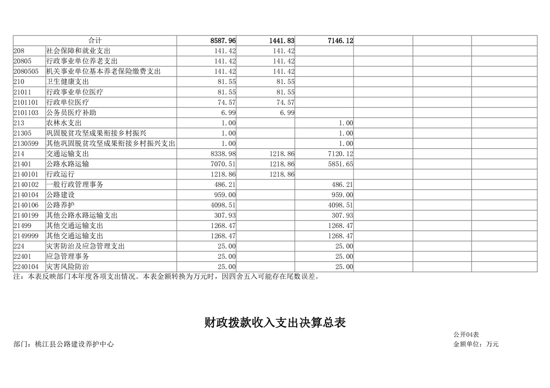 桃江县公路建设养护中心2024年部门决算公开说明