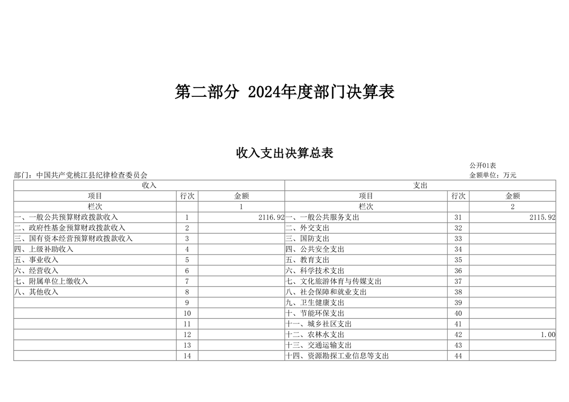 2024年度中国共产党桃江县纪律检查委员会部门决算