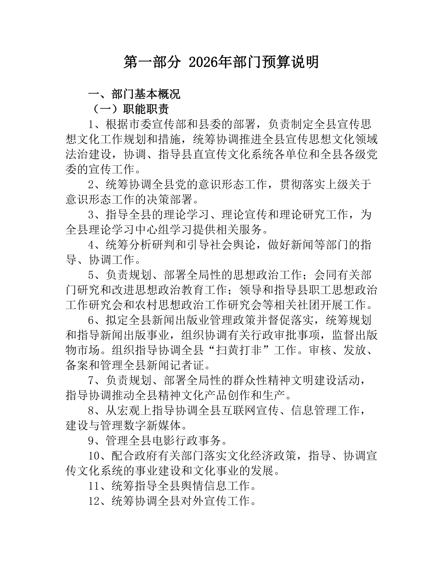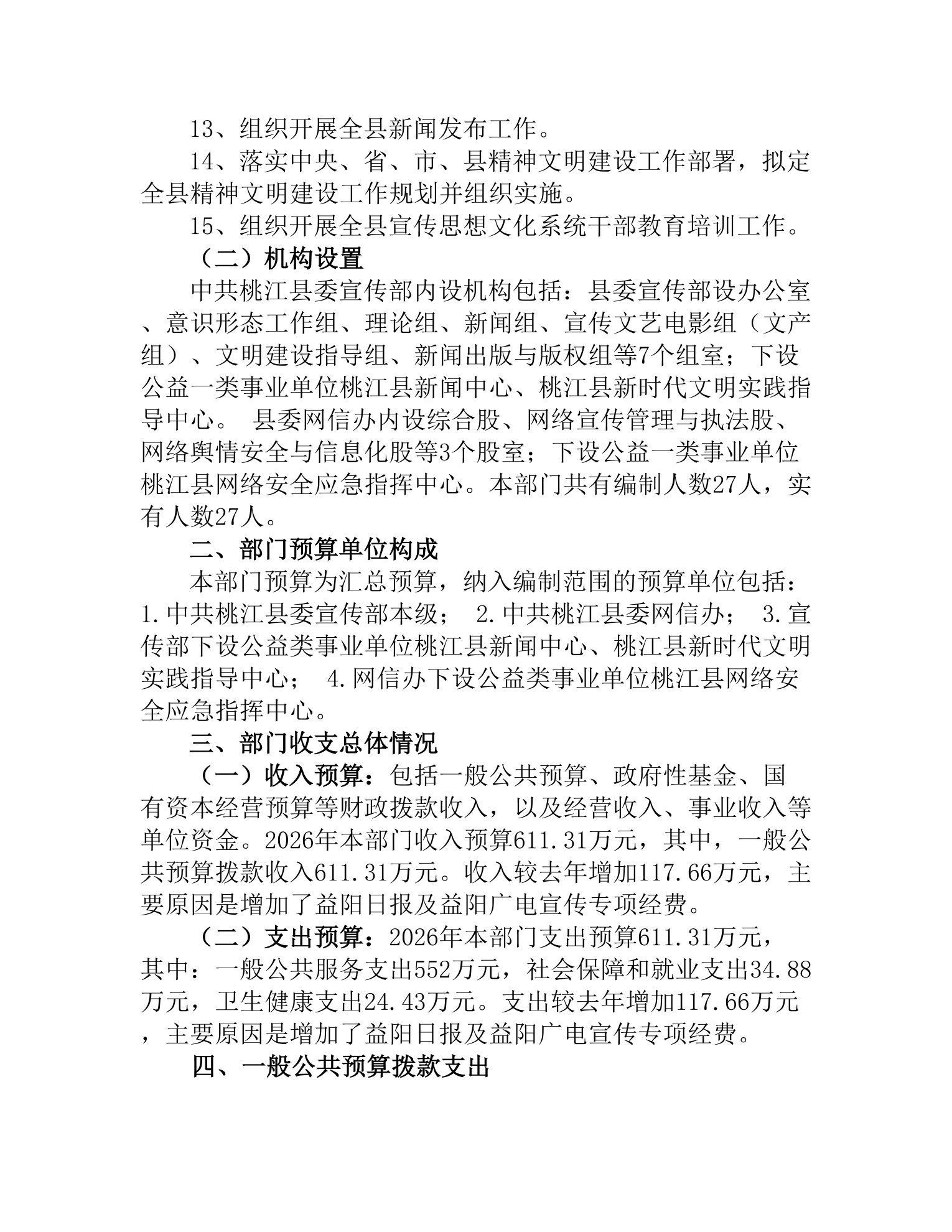 2026年度中共桃江县委宣传部部门预算公开说明