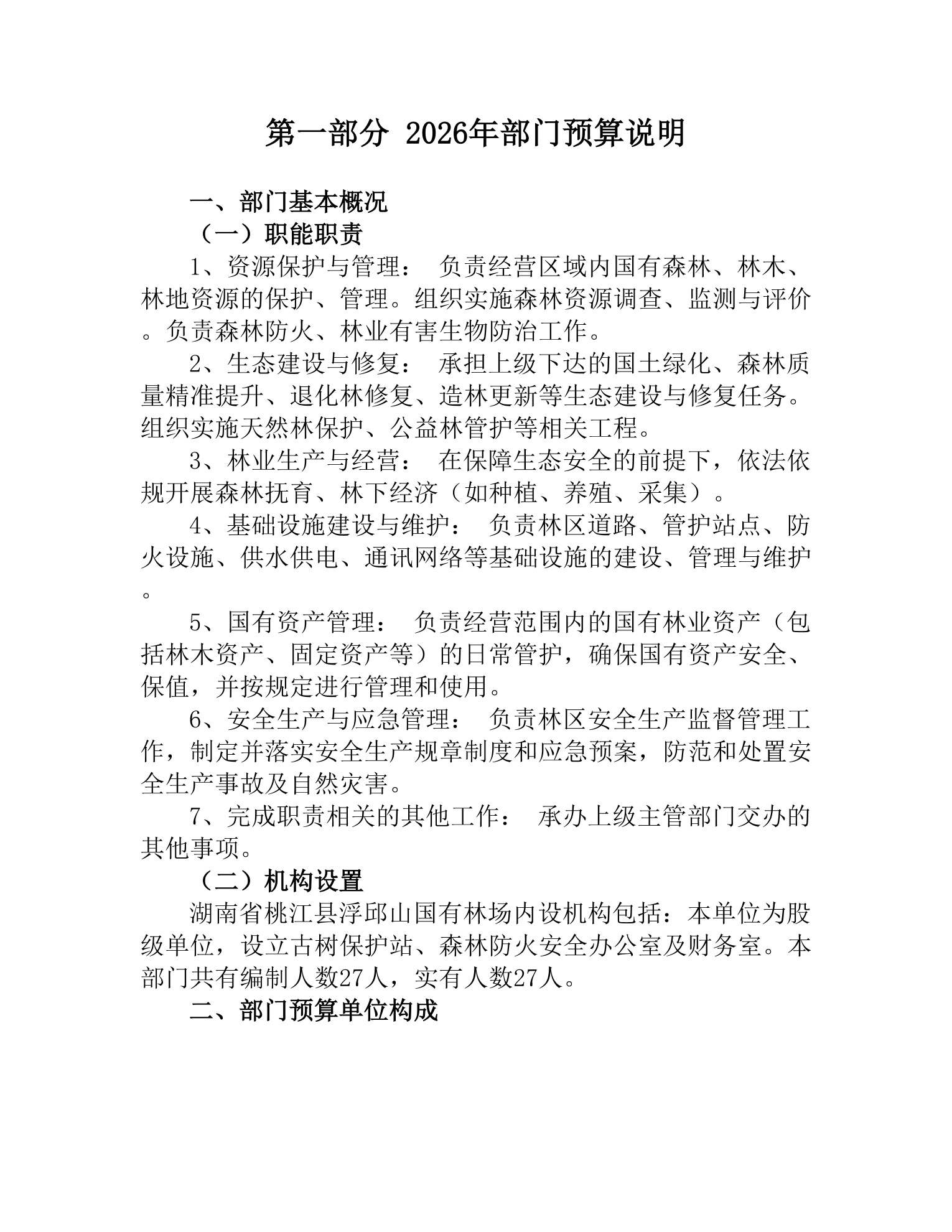 2026年度湖南省桃江县浮邱山国有林场部门预算公开说明