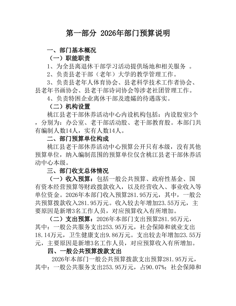 2026年度桃江县老干部休养活动中心部门预算公开说明