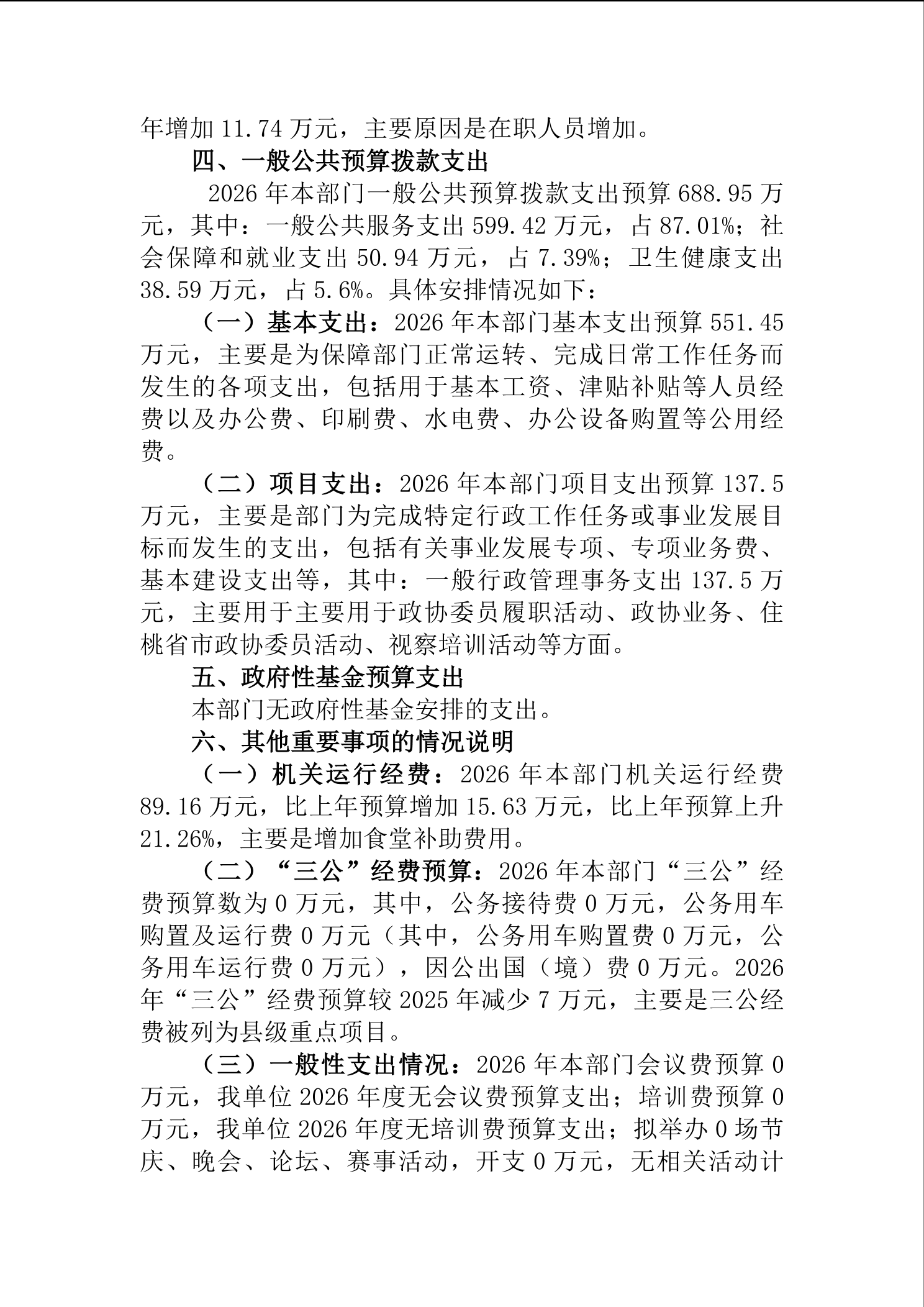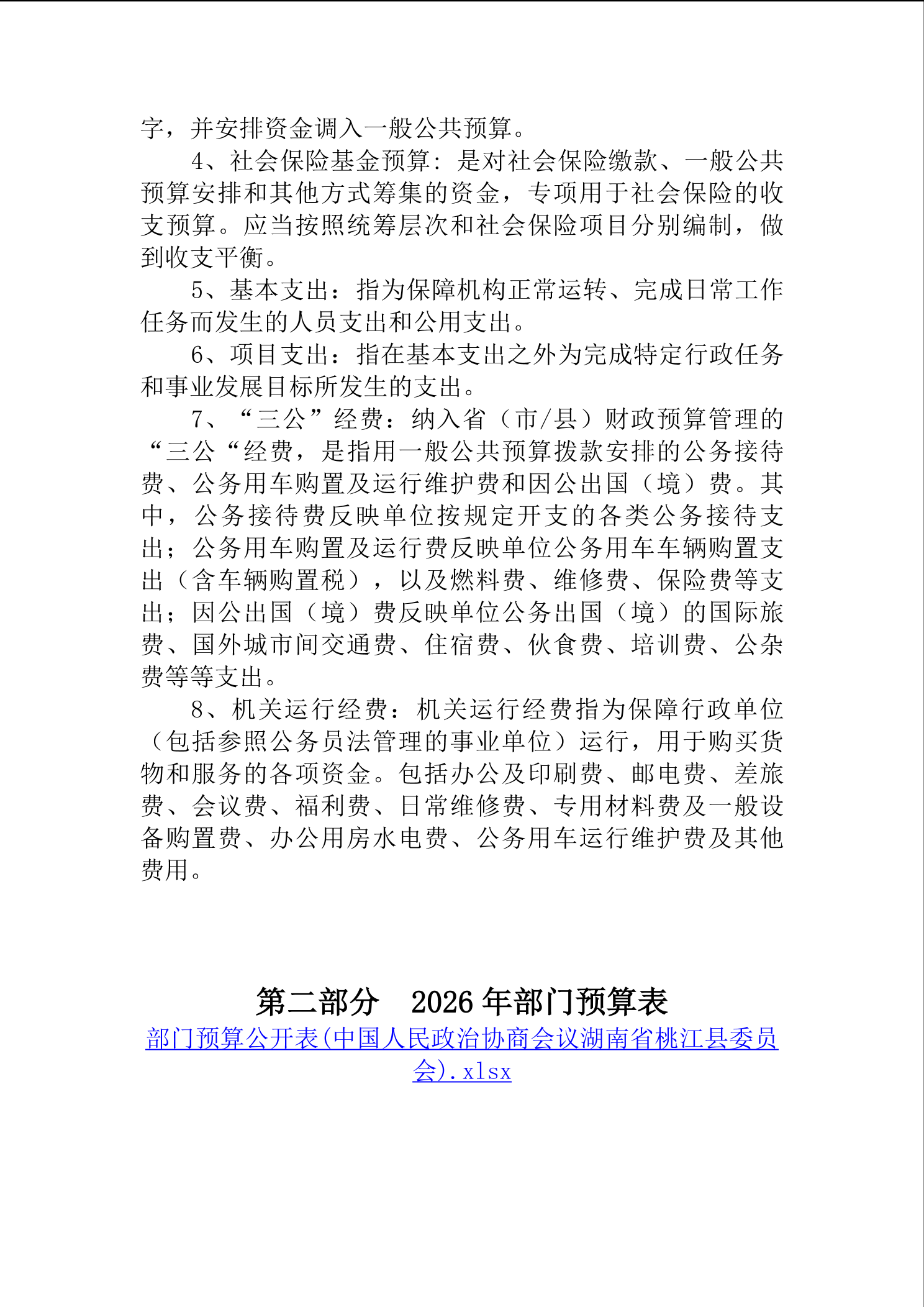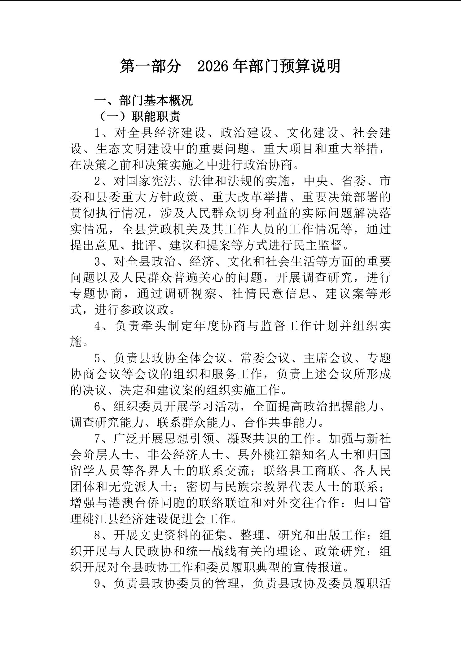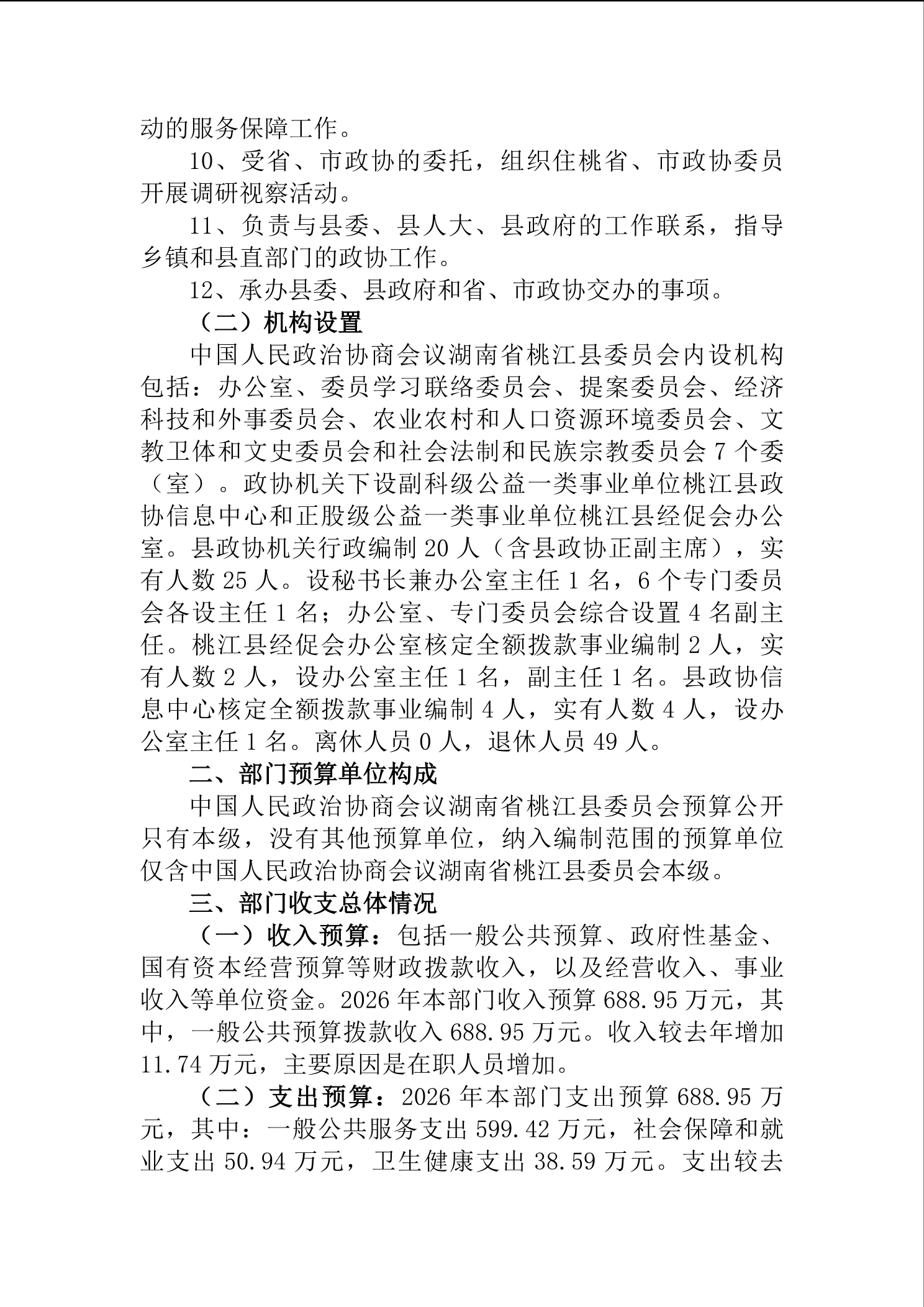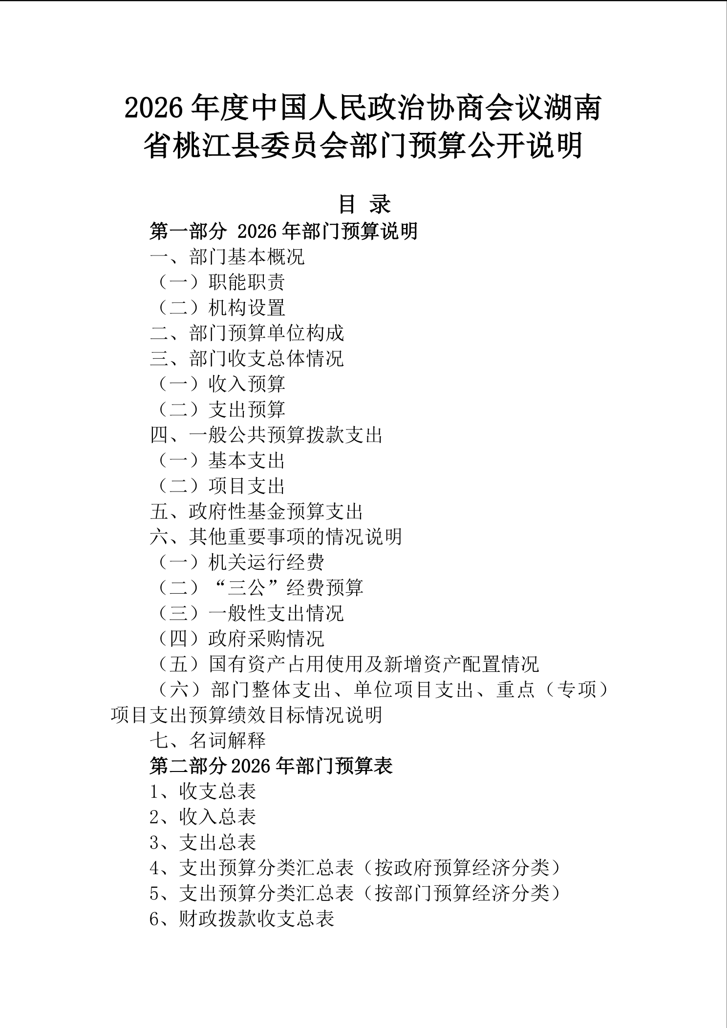 2026年度中国人民政治协商会议湖南省桃江县委员会部门预算公开说明