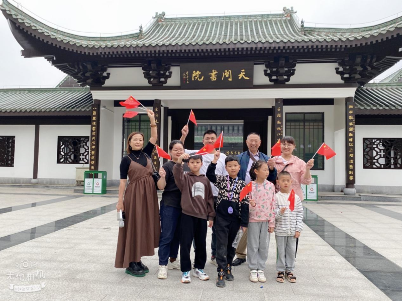 作者(左一)和亲友在天问书院合影 詹素菲 摄
