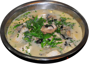 武潭鱼,口感微辣,汤汁乳白,鲜、香、醇,回味悠长;富含多种蛋白质、矿物质与微量元素。本菜品肉质外焦内嫩,具有健胃消食、利尿助阳、养阴补虚、催乳通乳等作用。三国时期,吴蜀两国争夺益阳,关云长深入吴营侦察,险被活捉,脱险之后一路狂奔,来到资江边一个叫武潭的地方。主仆数人想找个店家弄点吃的,见河边停着一艘小渔船,关云长遂上前询问渔翁是否有吃的东西,渔翁就在船上随便煮了一条大鱼给关云长吃,关云长吃后连说好吃好吃!关云长问这鱼为何这般好吃,有甚秘笈?渔翁说,没什么秘笈,就是用武潭河水煮武潭的鱼。自此,武潭鱼就在桃江民间广为流传,奉为美食。