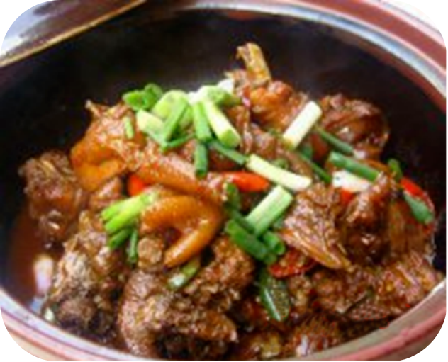 石洞姜辣鸡,油而不腻,既能驱寒袪湿,亦具保健功能。据《邹氏族谱》记载,洪武元年,邹君先锋领明太祖朱元璋之命,率部沿洞庭湖溯资江而上,追击陈友谅残部。时值正寒冬腊月,邹君先锋在石洞港安营扎寨,突感风寒,卧床不起。一天,当地一位老翁拄着拐杖送来一盆姜辣鸡,邹君先锋食后,风寒大祛,体能迅速恢复。之后勇赴战场,一举消灭了敌军,为朱元璋统一天下立下汗马功劳。后来,邹君先锋因对姜辣鸡情有独钟,解甲归田后隐居石洞港,从此姜辣鸡在邹氏后人中广为流传,经过几百年的演变,便有了今天的石洞姜辣鸡。
