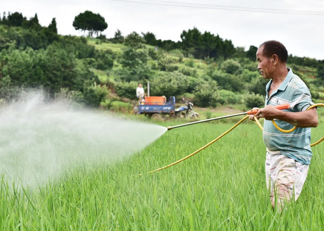 (6月15日,嘉禾县晋屏镇雷公井村,农民在田间进行病虫害治理,保障农作物良好生长,助推粮食丰产丰收。黄春涛 摄)