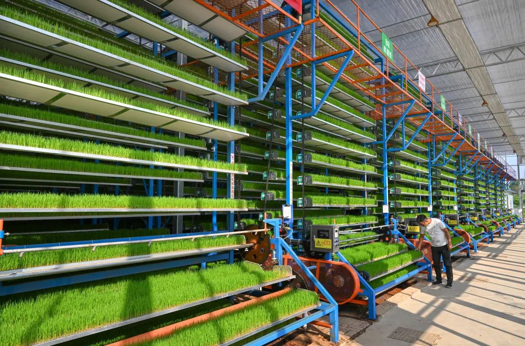 (益阳市赫山区泉交河镇“竹泉山智慧农业第一村”,村民在5G智慧农业植物工厂里劳作。湖南日报全媒体记者 郭立亮 摄)