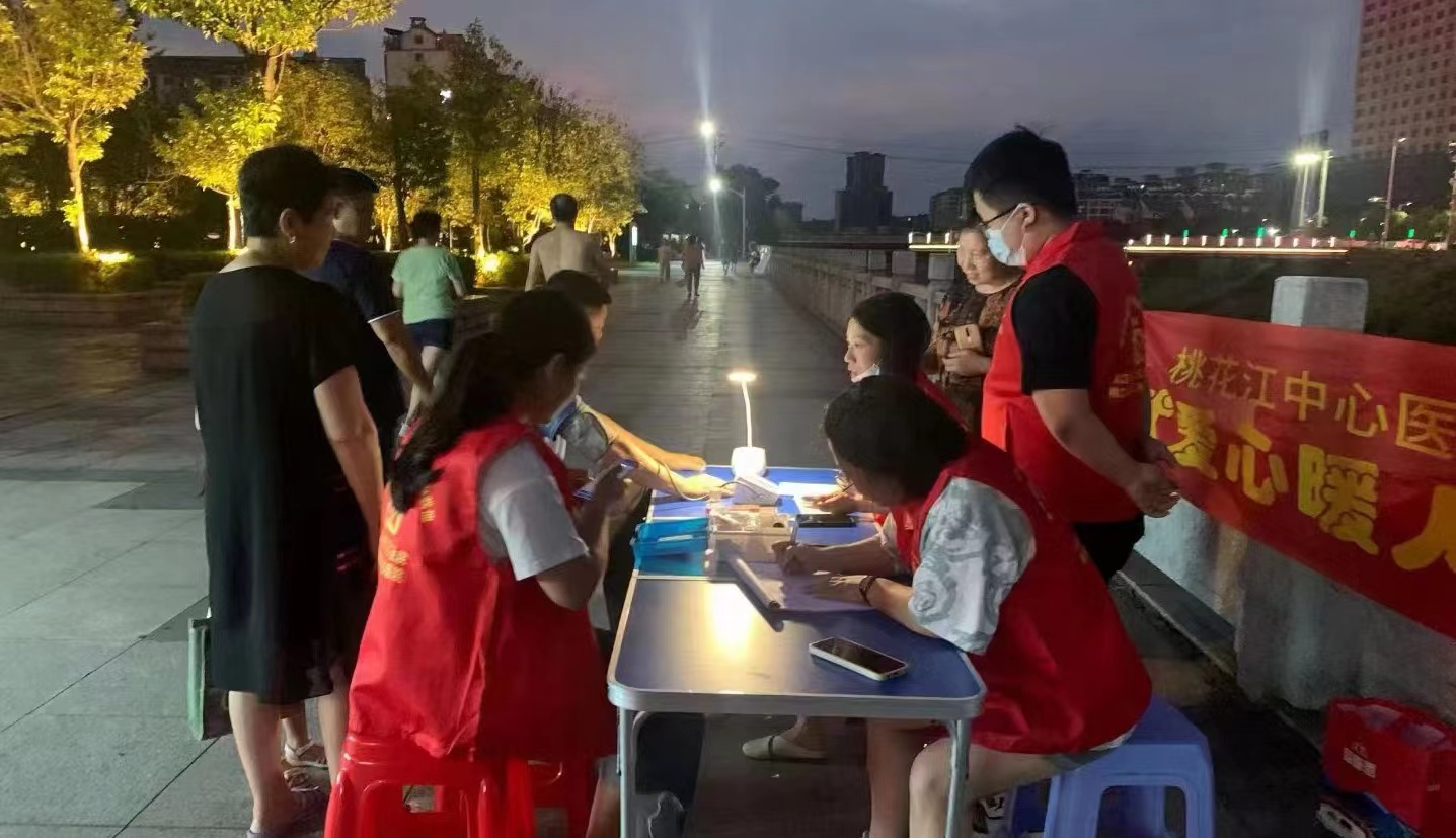 桃花江镇卫生院医务人员在沿江风光带一侧摆“夜摊”