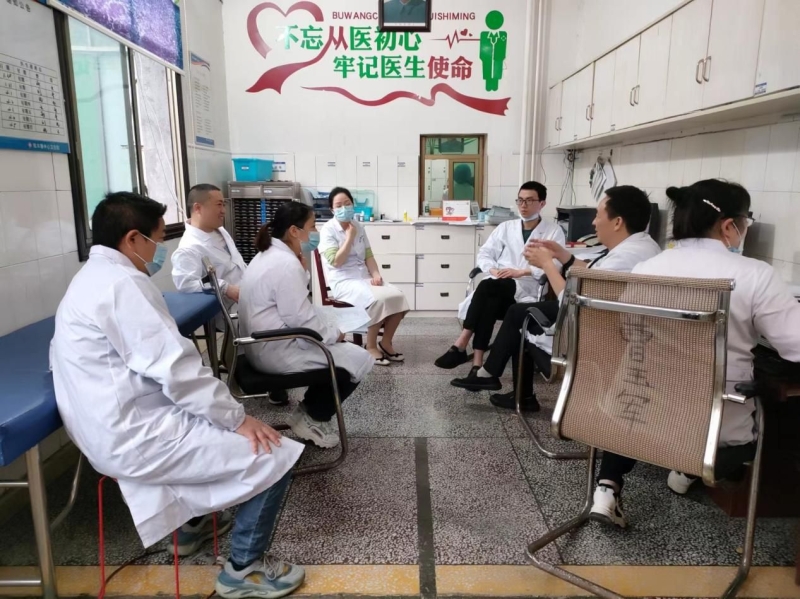 为进一步落实上级关于医共体建设的工作部署,扎实推进桃江县医共体建设高质量发展,4月14日上午,桃江县医共体龙头医院县中医医院内三科主任刘丰、护士长唐琼,ICU主任蒋磊以及医务科主任潘思明到松木塘镇中心卫生院指导交流工作。