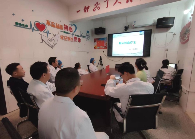 首先县中医医院的专家们和医务人员进行业务交流、授课,后到松木塘镇中心卫生院住院部进行教学查房,查看疑难病例,仔细检查询问病人病症,及当前治疗方案,再给出针对性的中医药治疗意见。最后护士长唐琼给医院的医生护士上了一堂“耳尖放血疗法”的课程,指导基层卫生院能利用简单有效的中医外治手段,提升基层的中医救治能力以及促进中医药适宜技术推广。