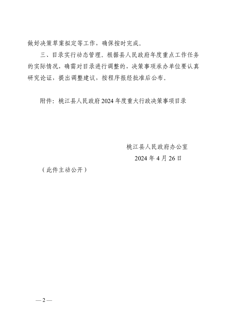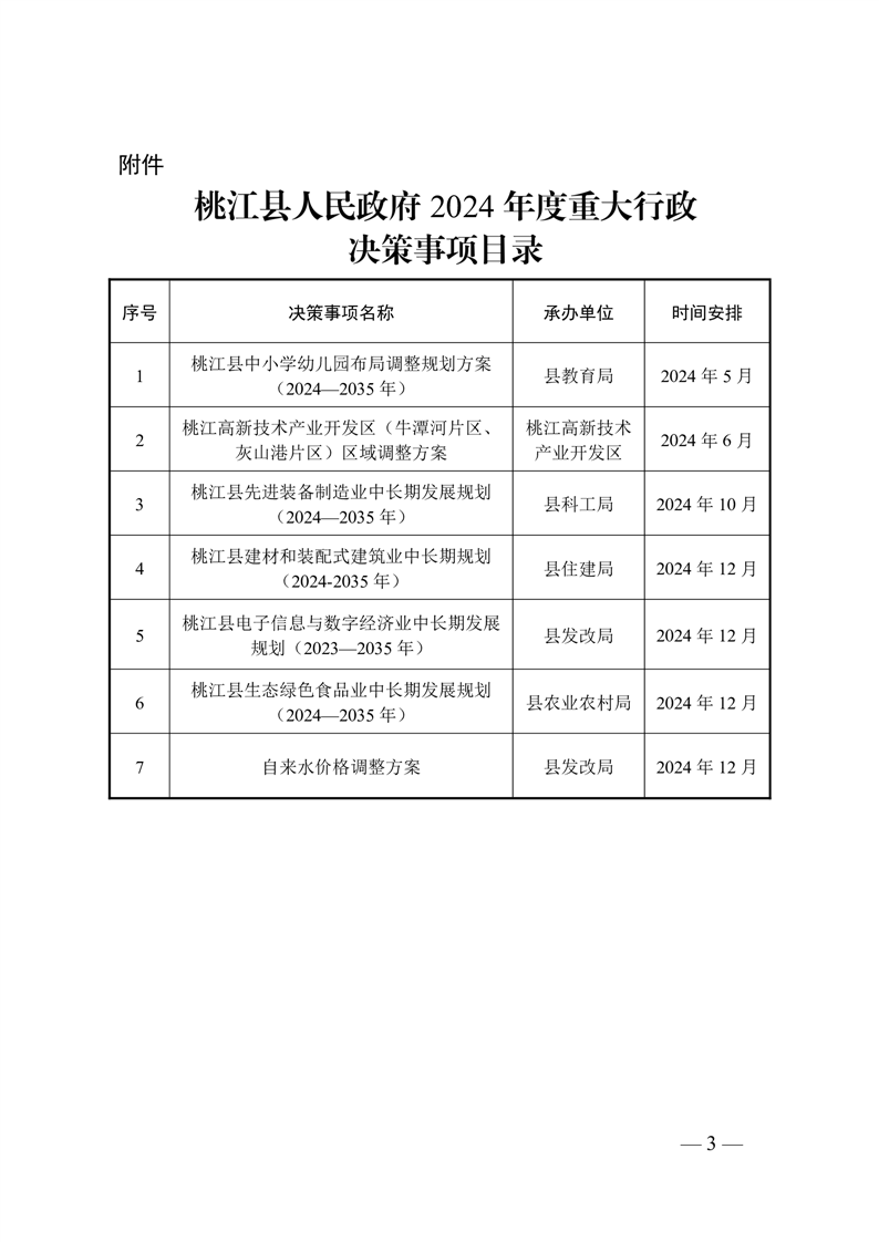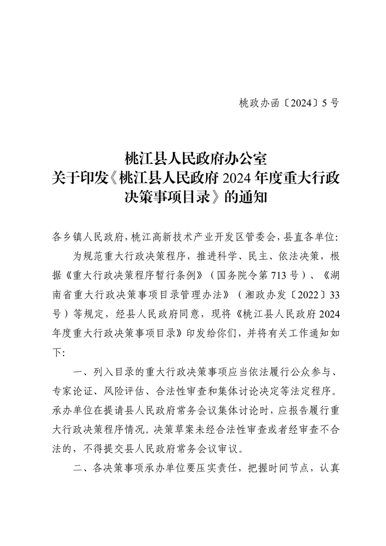 桃江县人民政府办公室 关于印发《桃江县人民政府2024年度重大行政决策事项目录》的通知