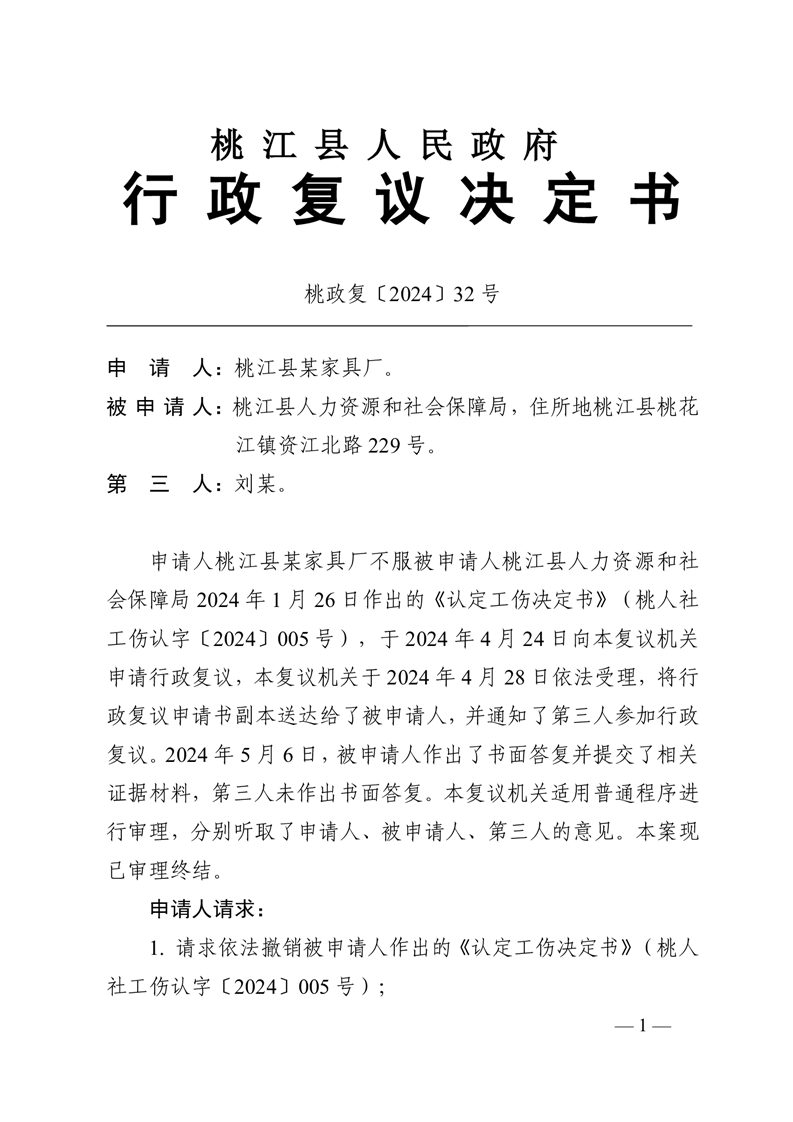 行 政 复 议 决 定 书 桃政复〔2024〕32号