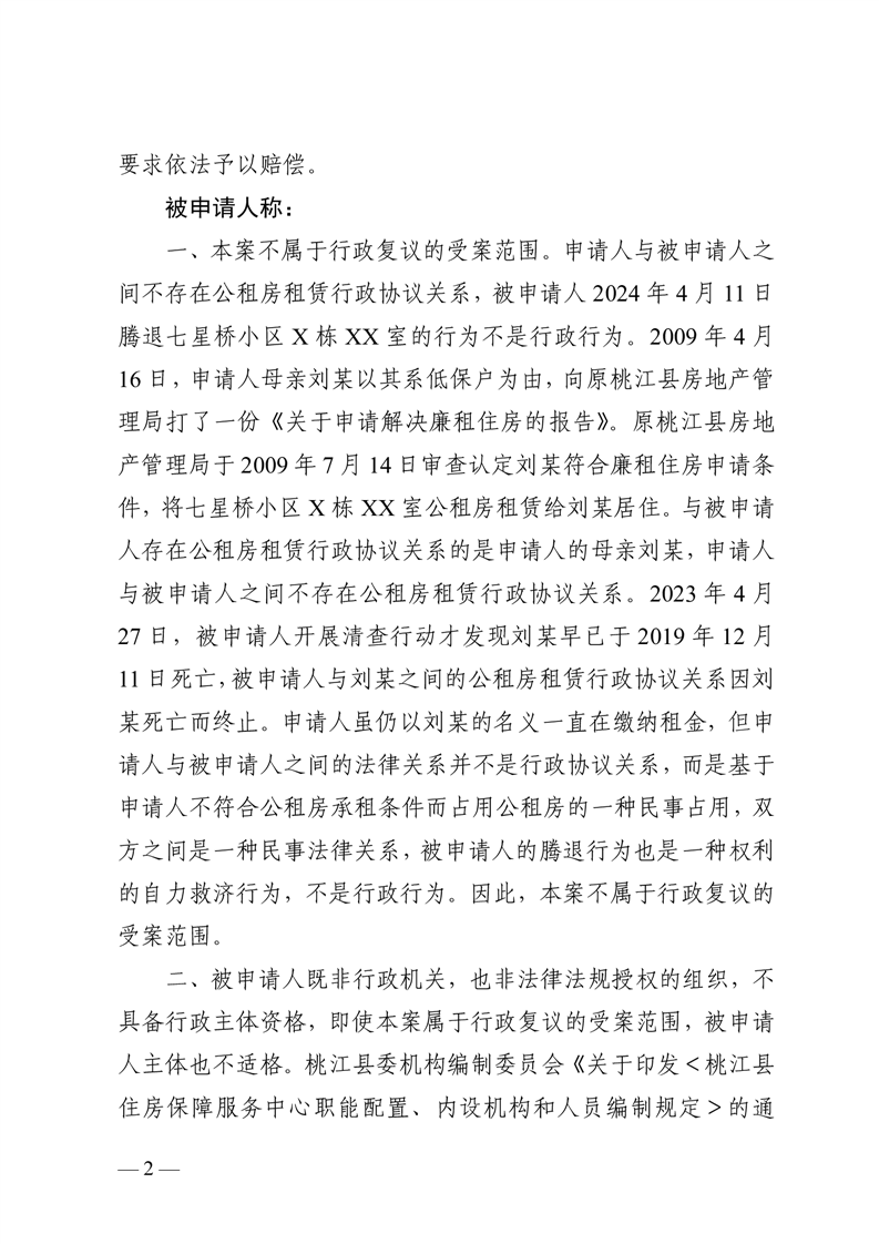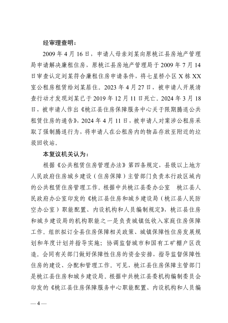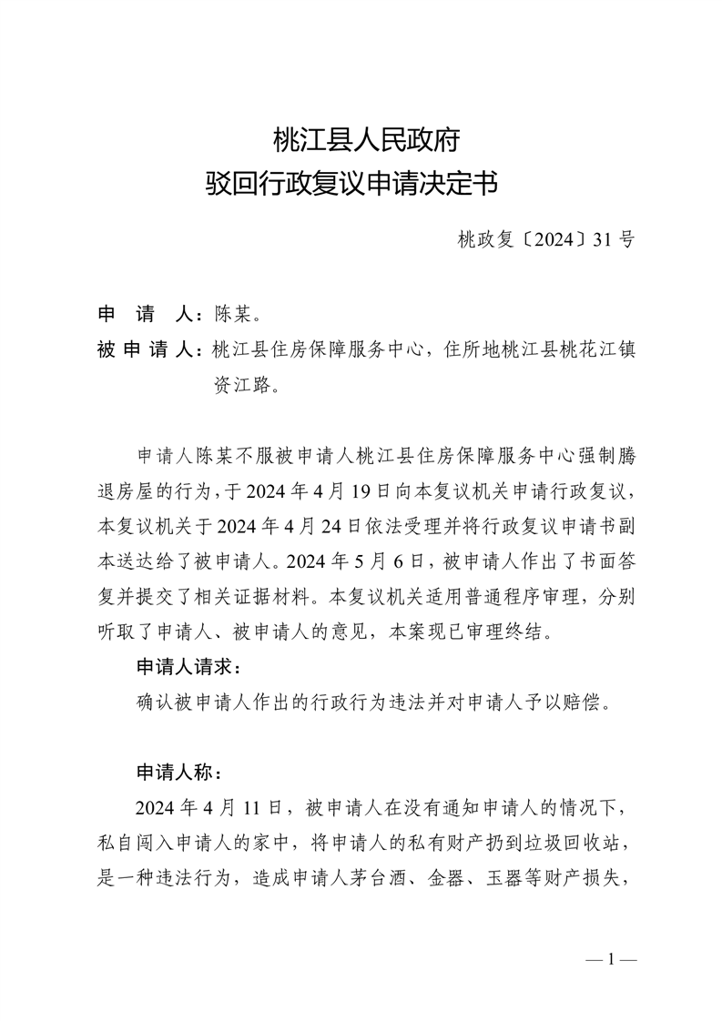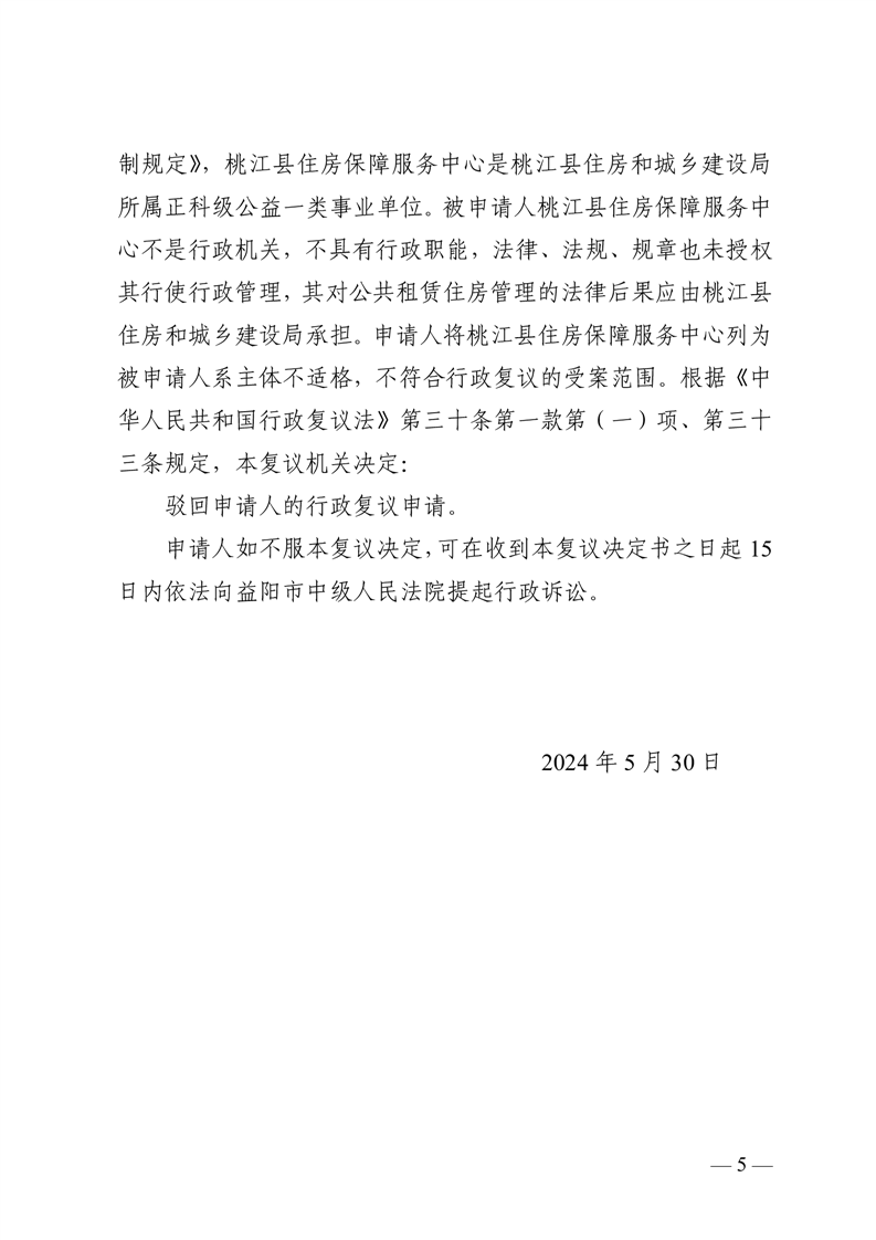 驳 回 行 政 复 议 申 请 决 定 书 桃政复〔2024〕31号