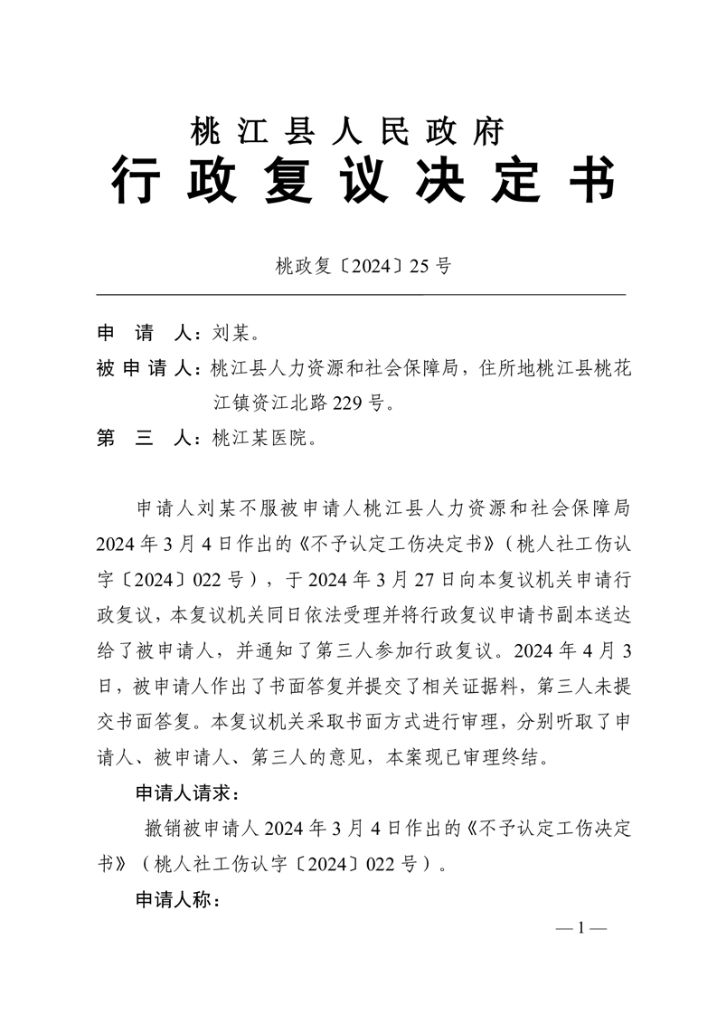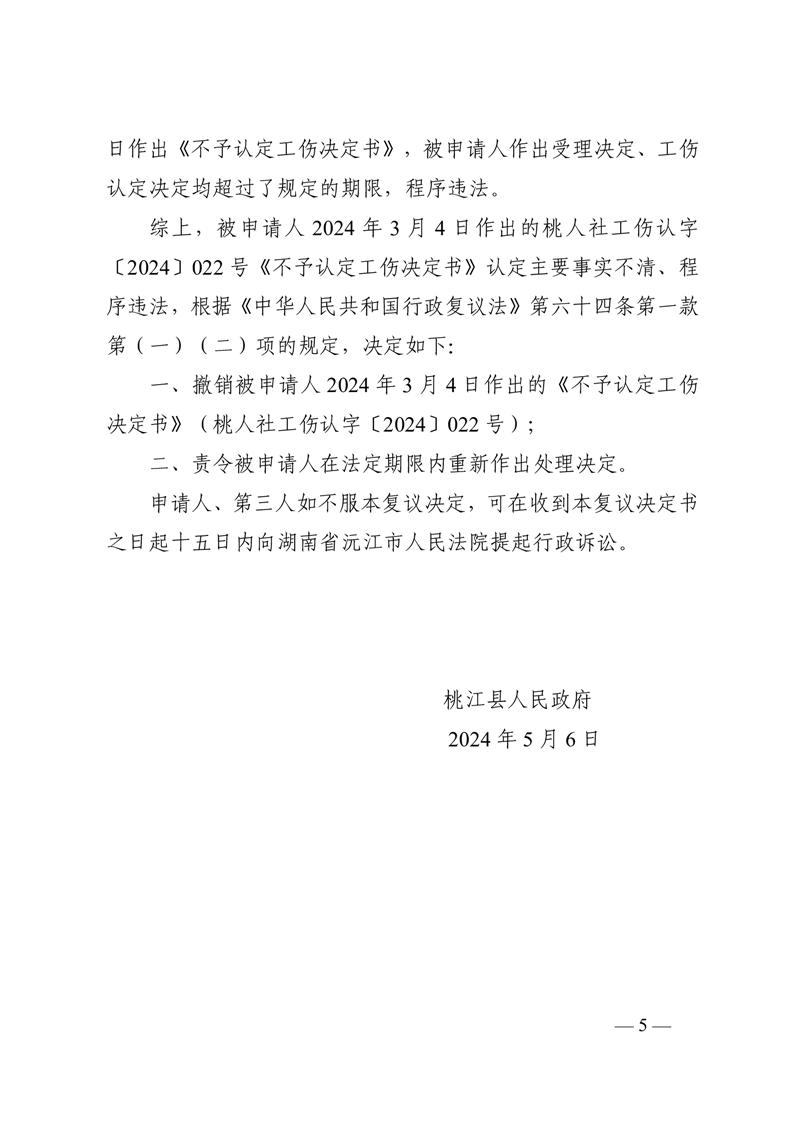 行 政 复 议 决 定 书 桃政复〔2024〕25号