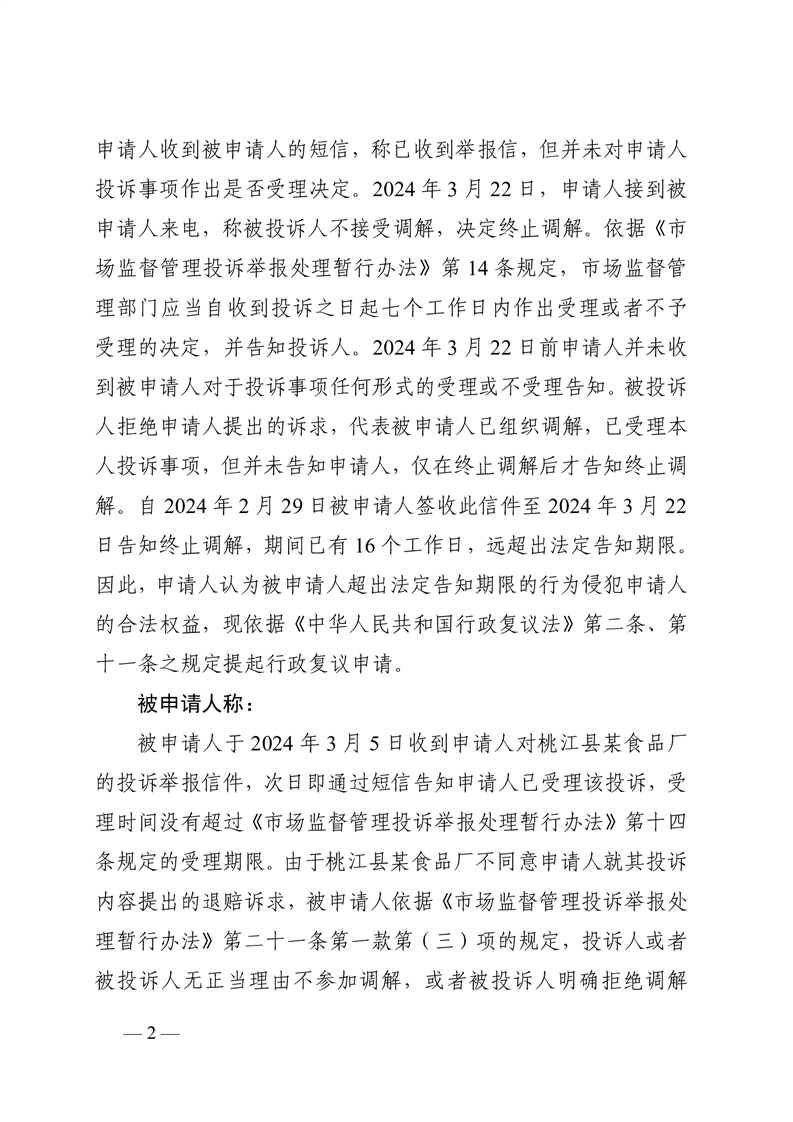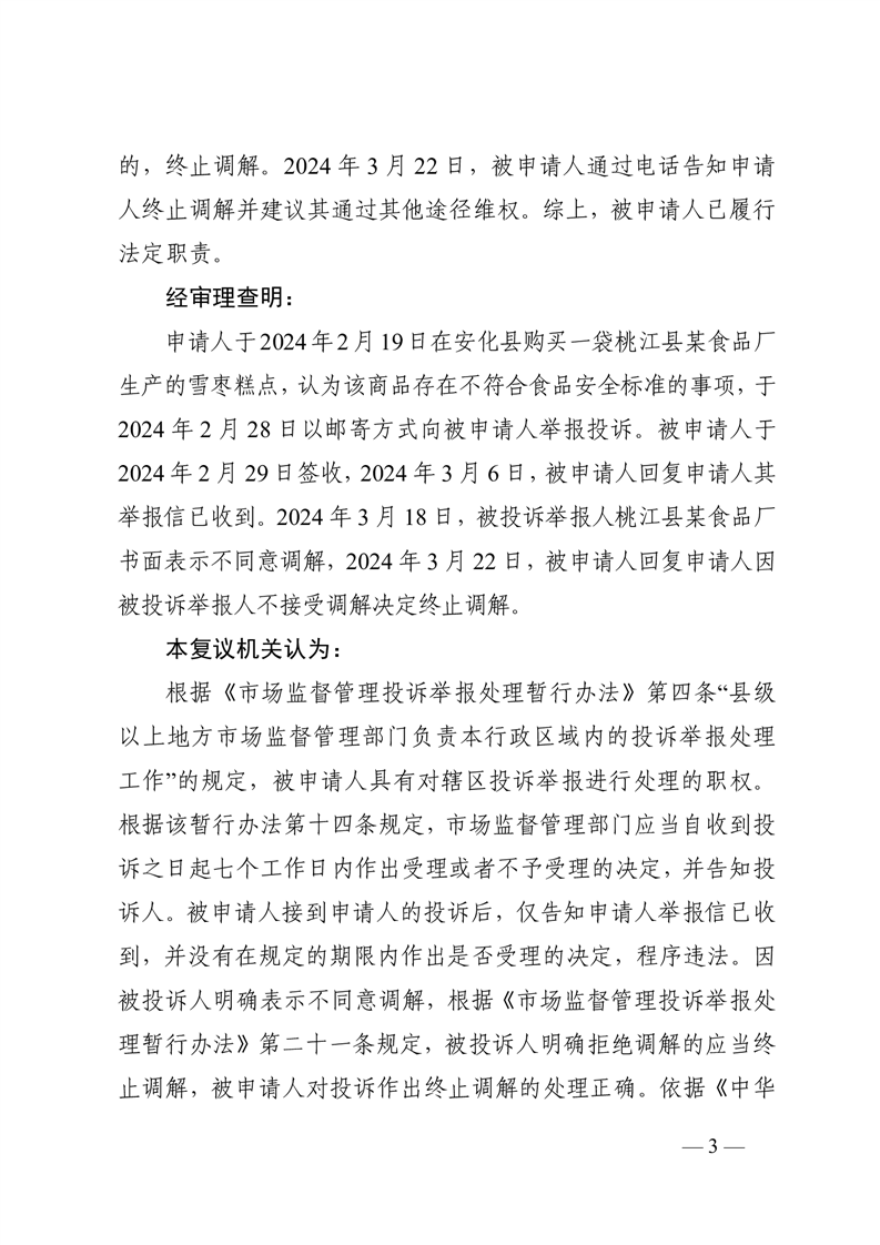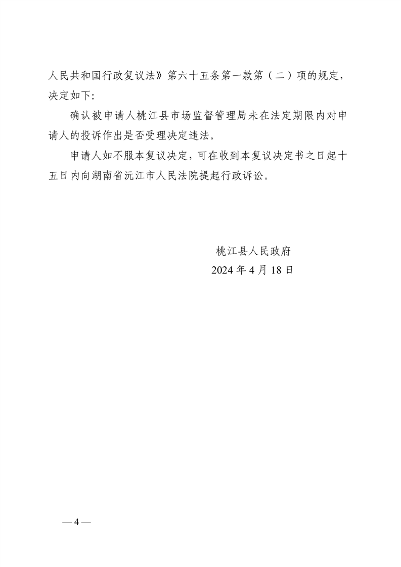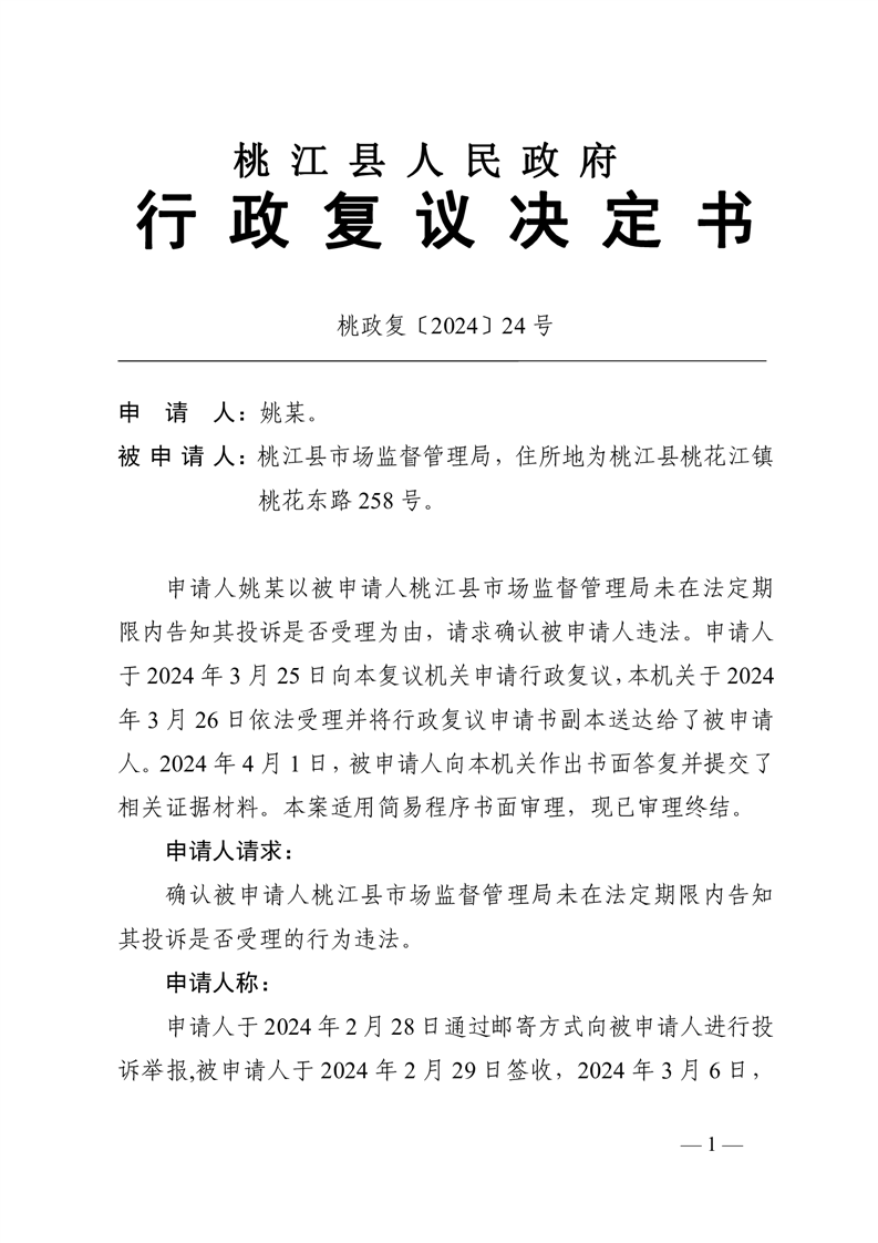 行 政 复 议 决 定 书 桃政复〔2024〕24号