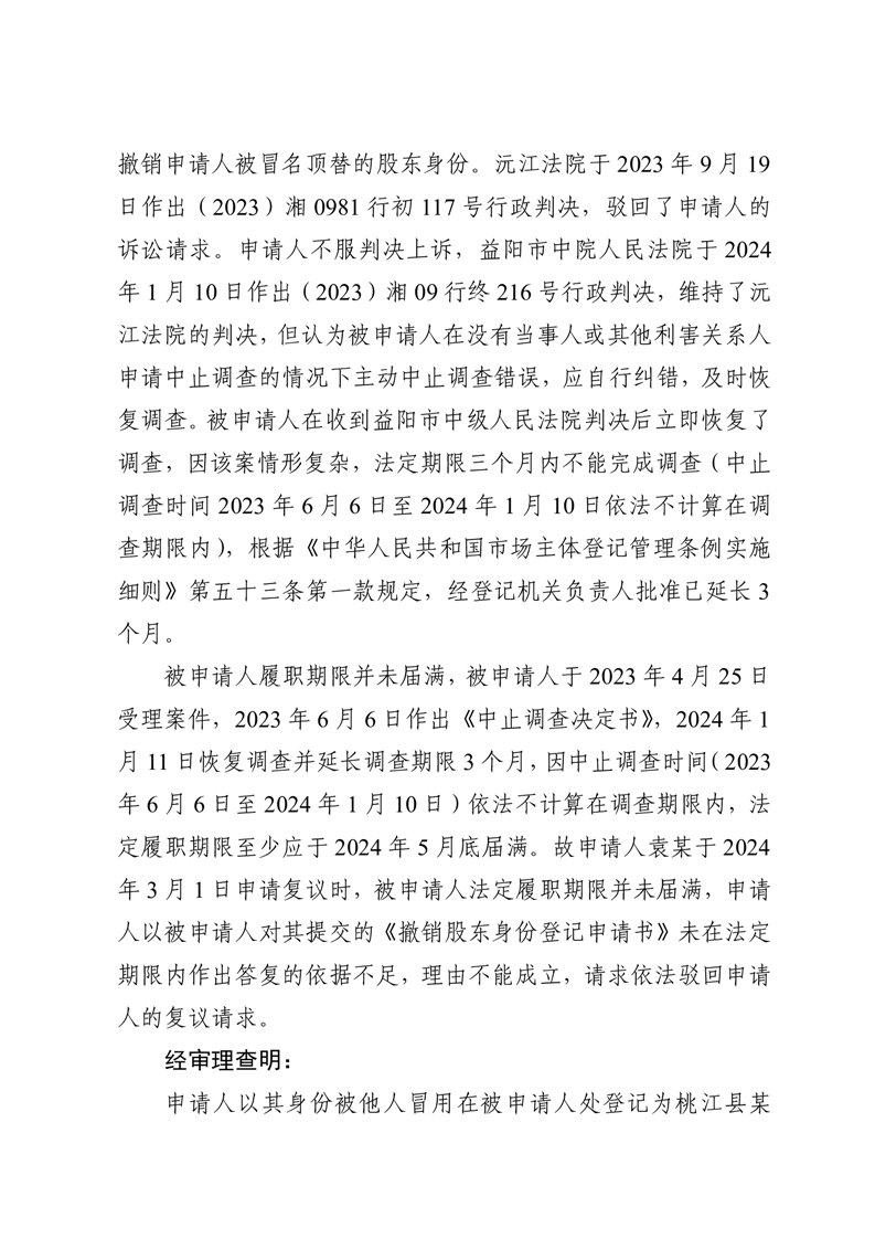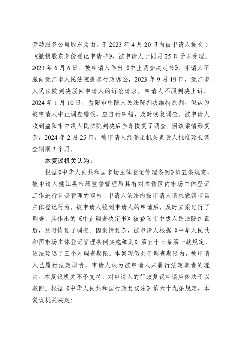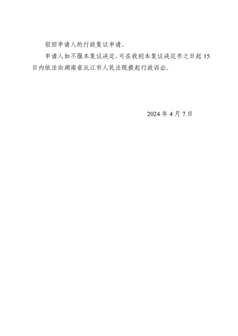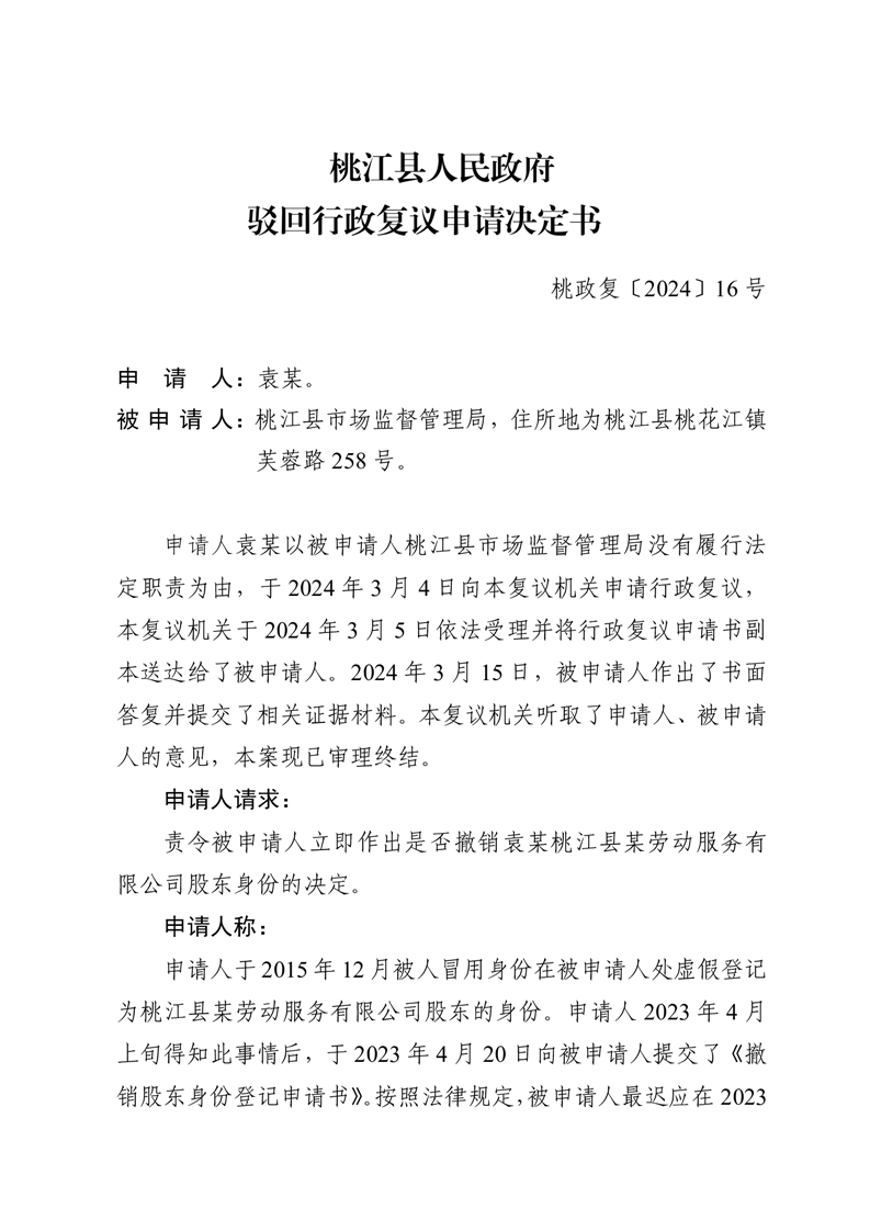驳 回 行 政 复 议 申 请 决 定 书 桃政复〔2024〕16号