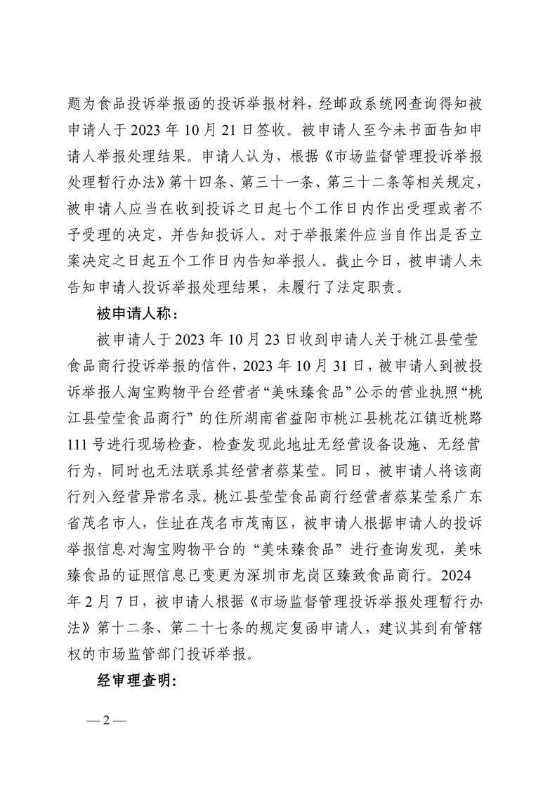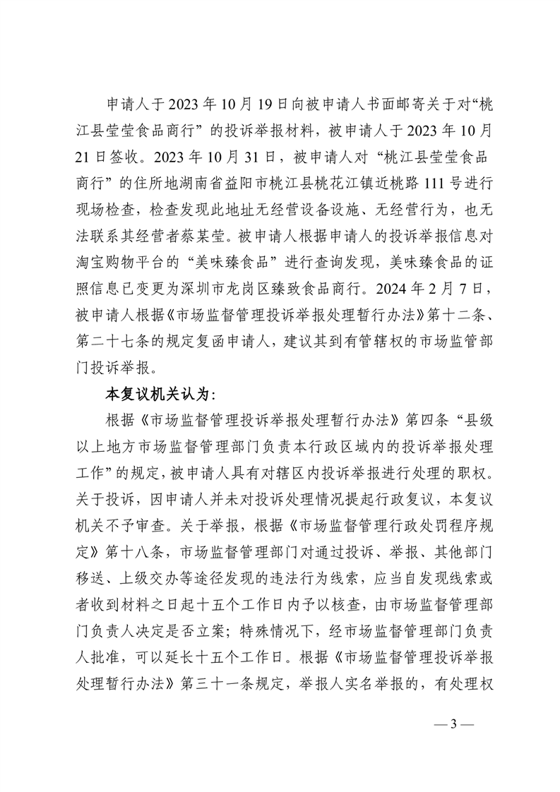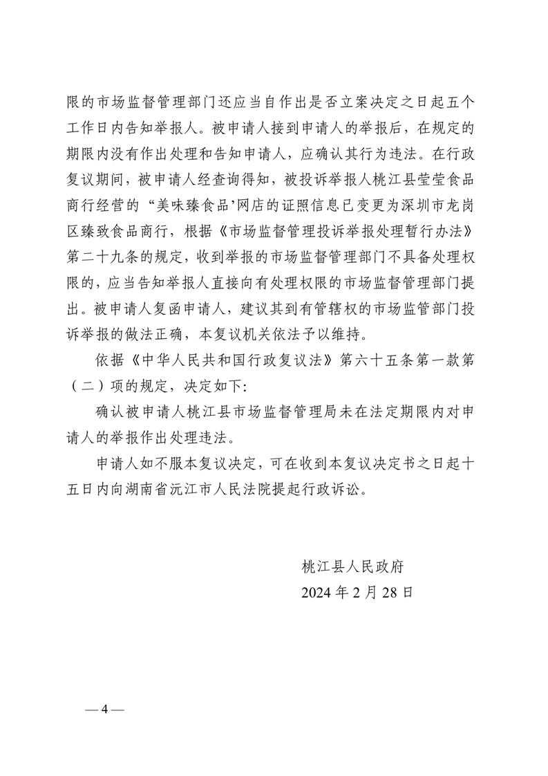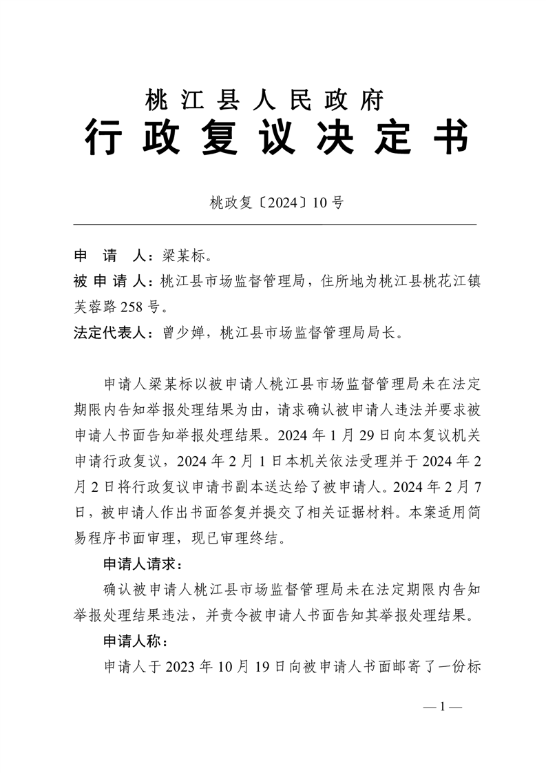 行 政 复 议 决 定 书 桃政复〔2024〕10号