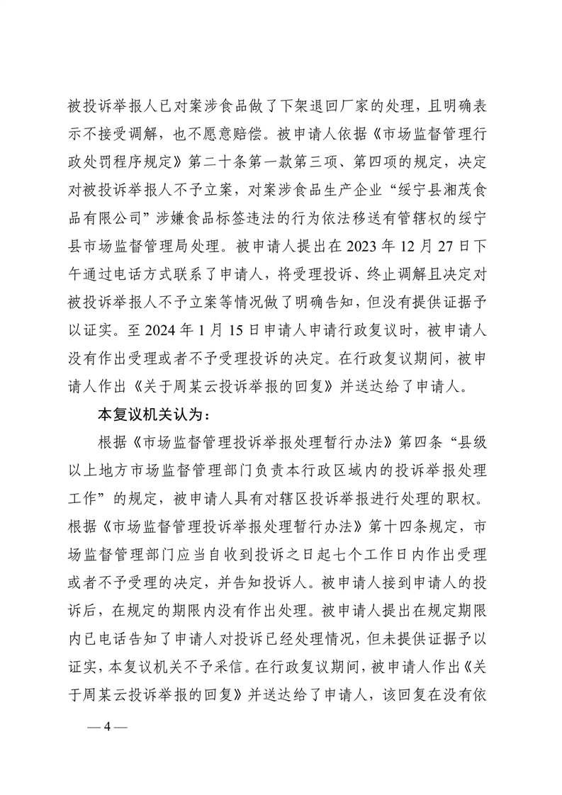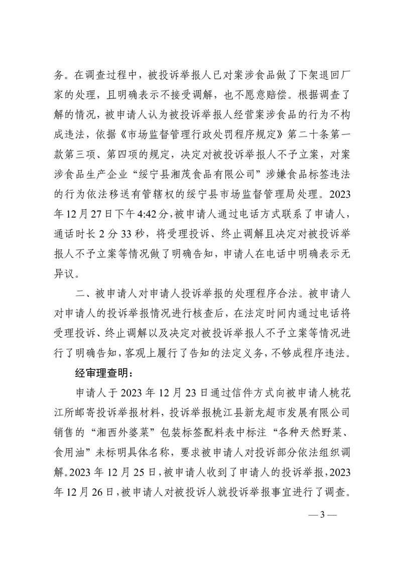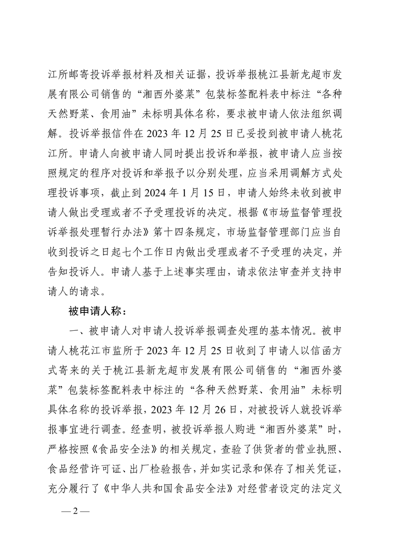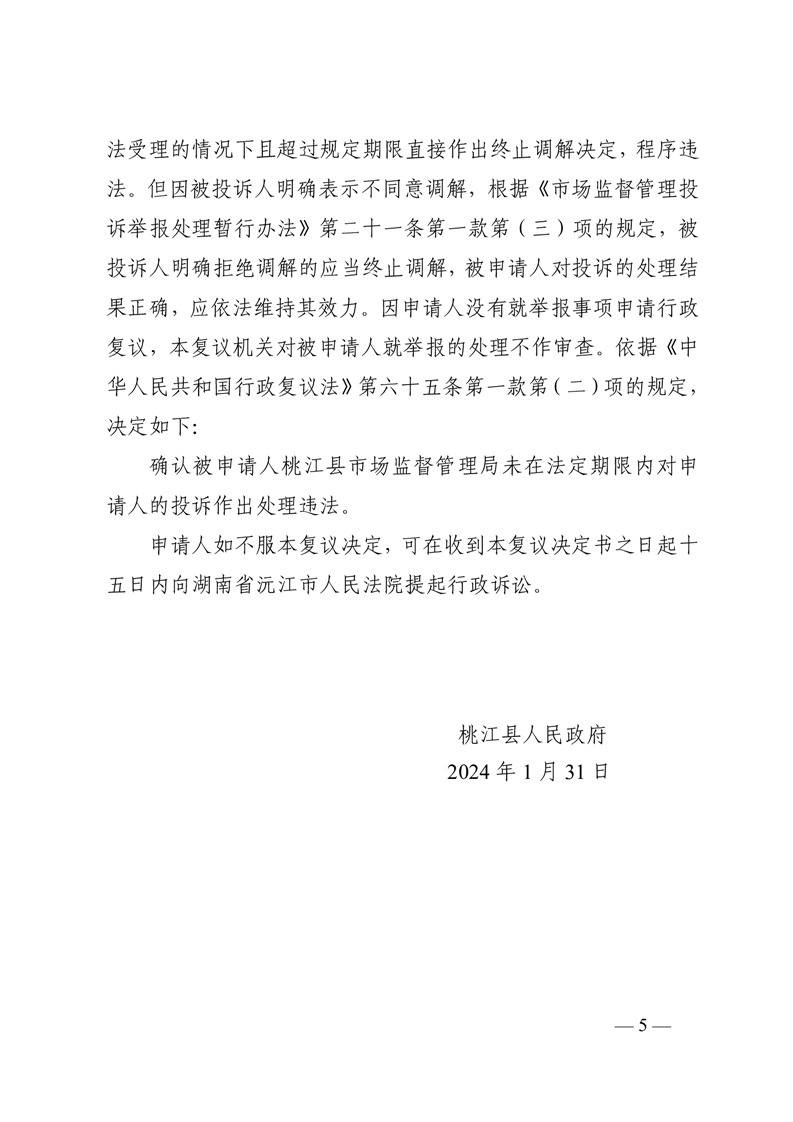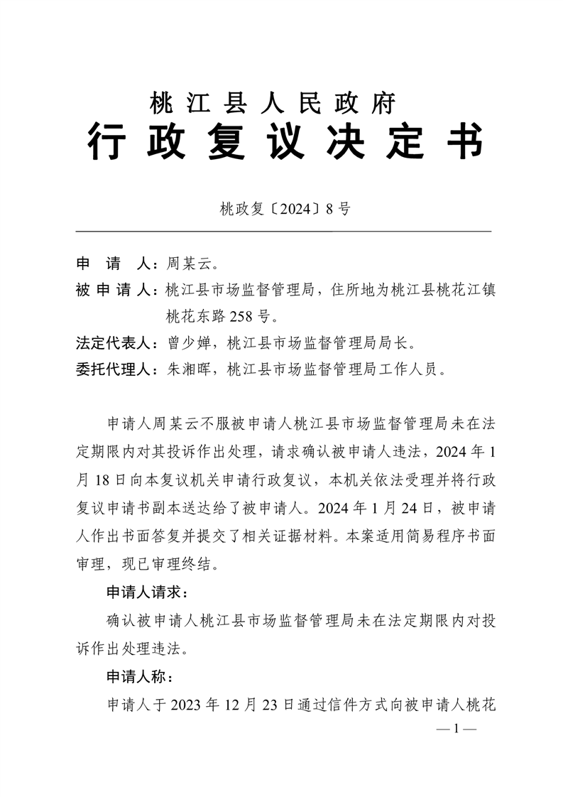 行 政 复 议 决 定 书 桃政复〔2024〕8号