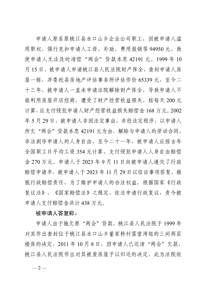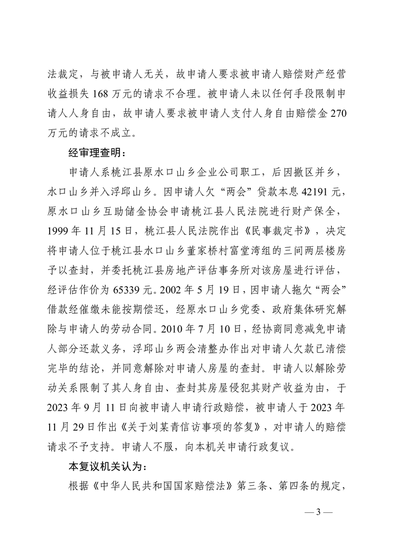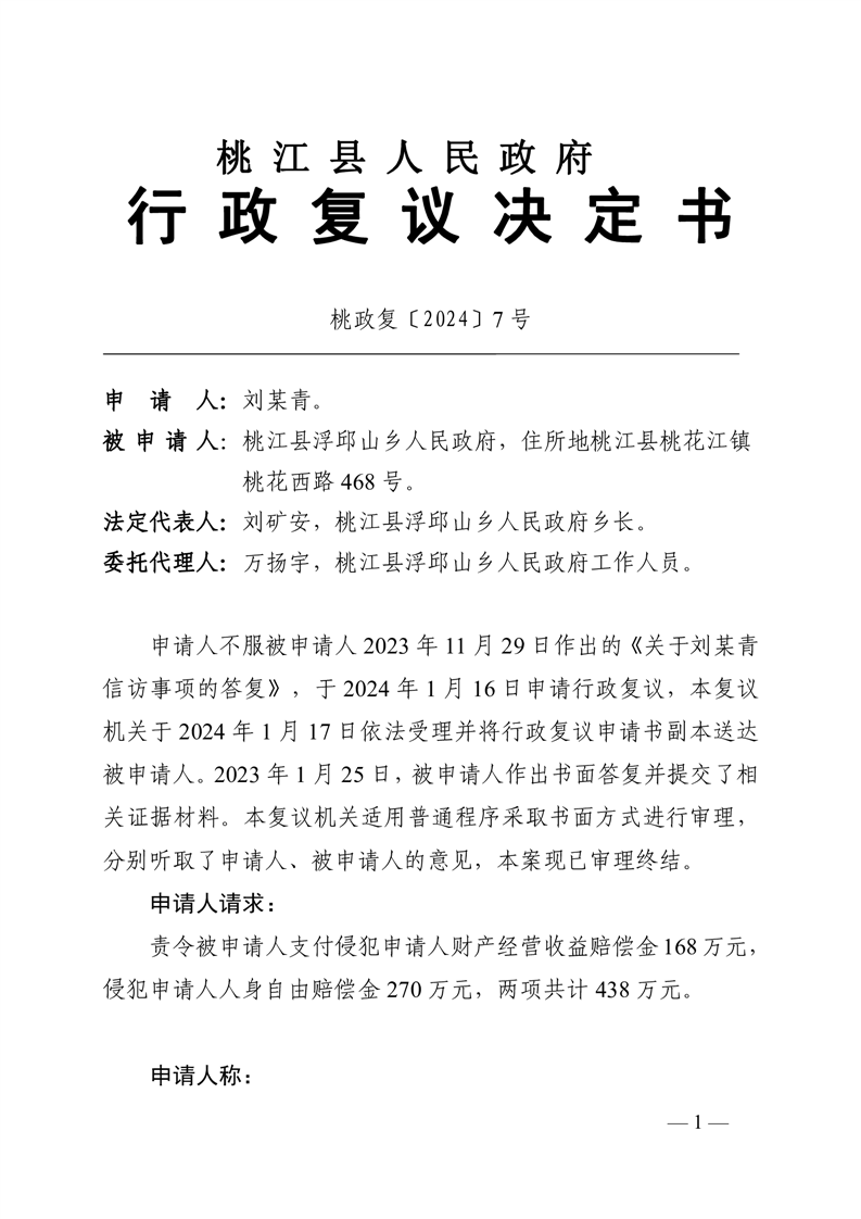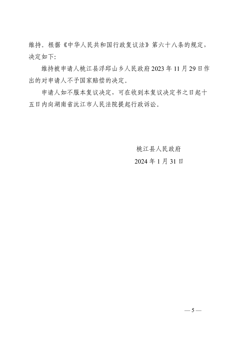 行 政 复 议 决 定 书 桃政复〔2024〕7号