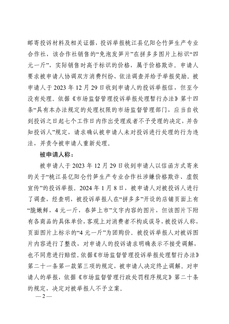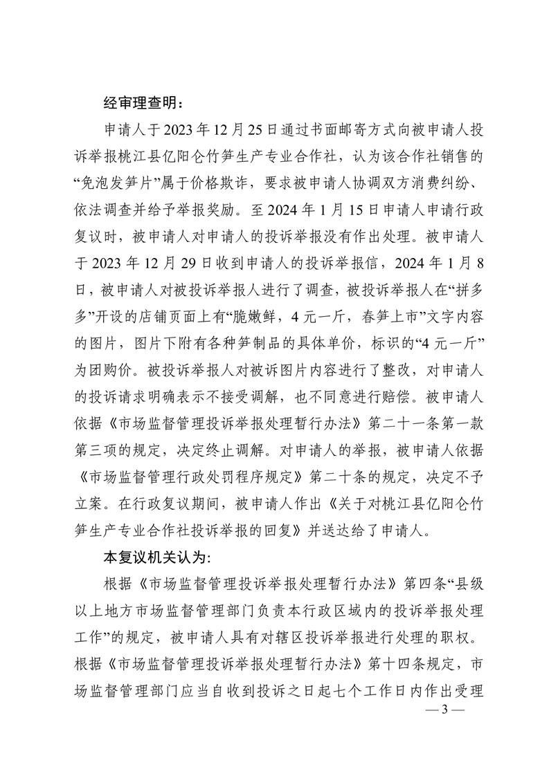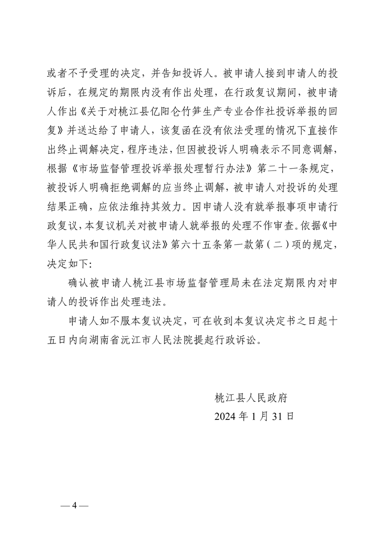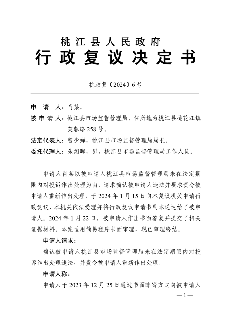 行 政 复 议 决 定 书 桃政复〔2024〕6号
