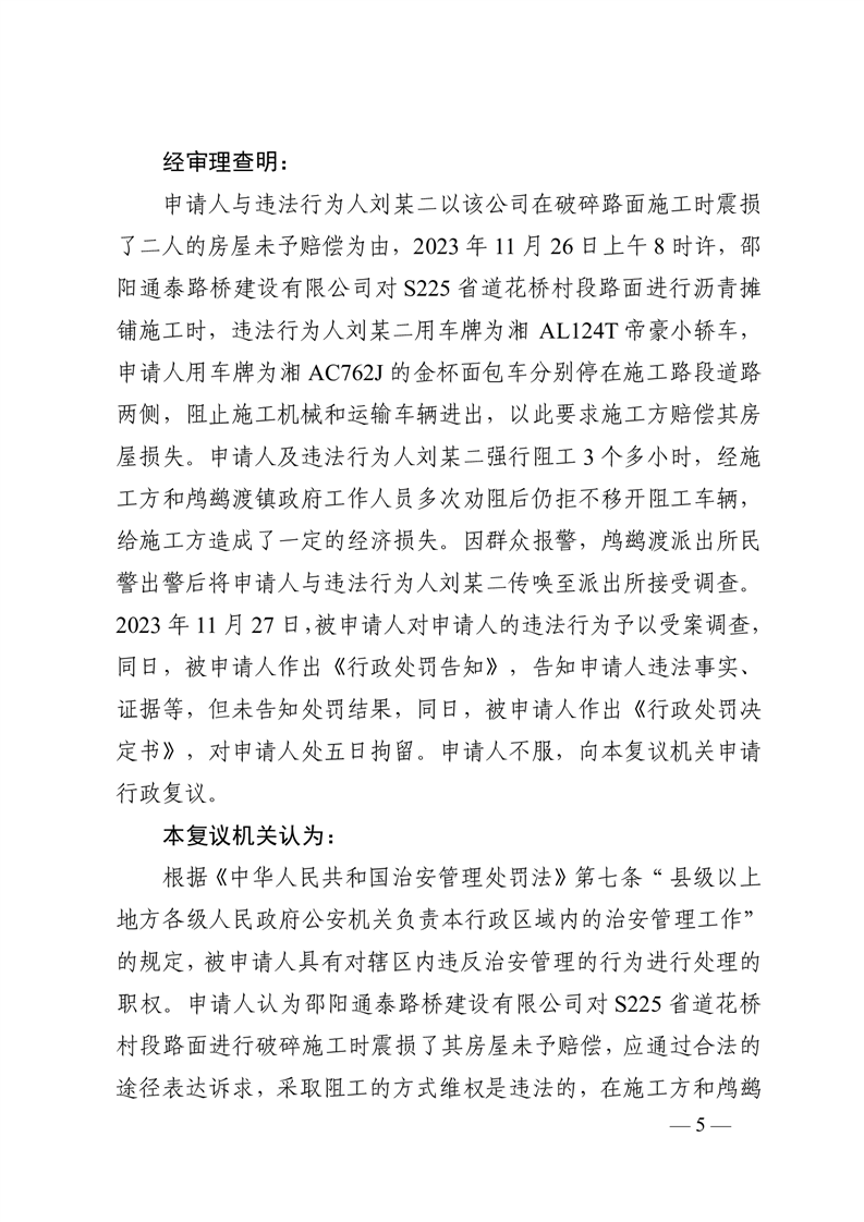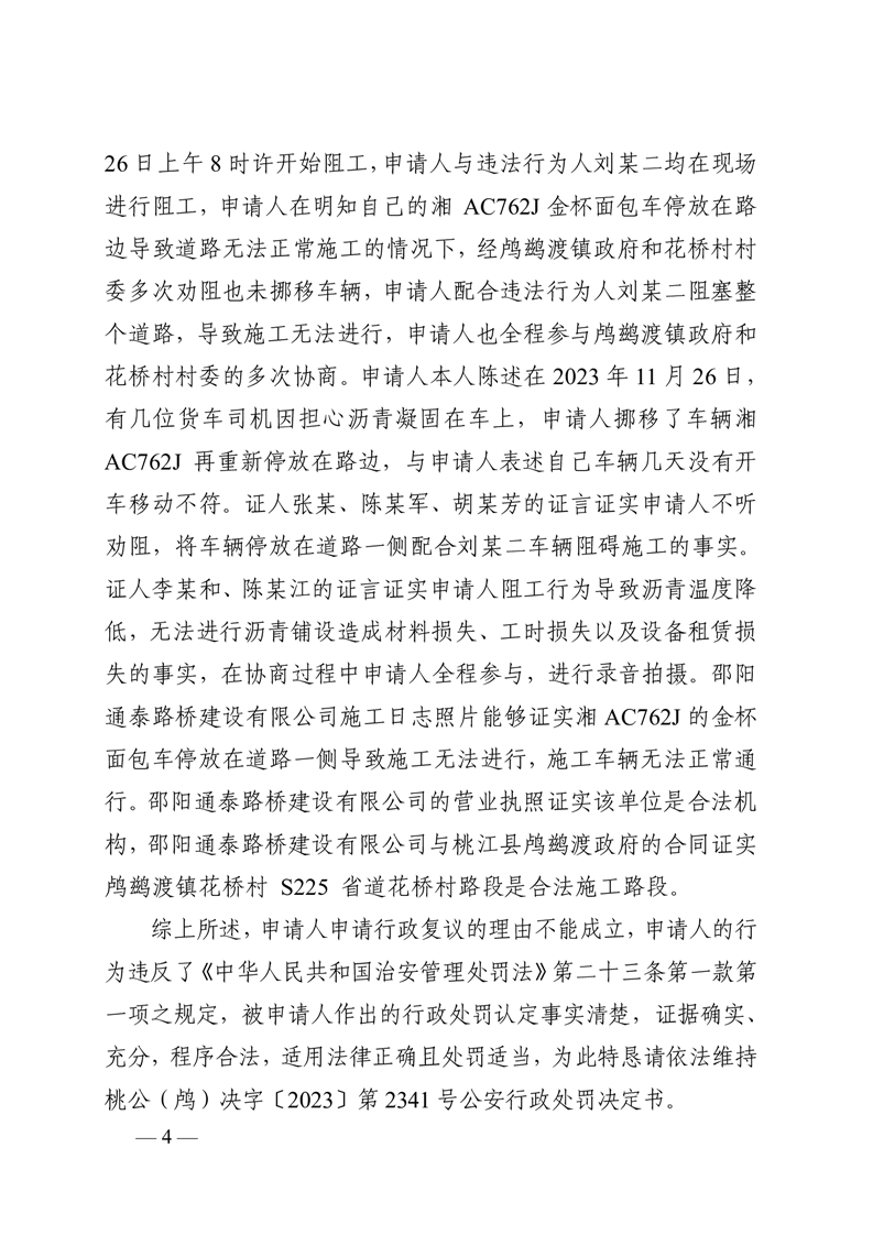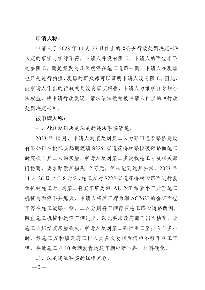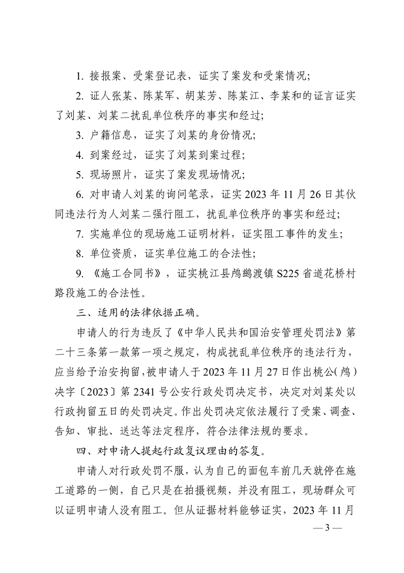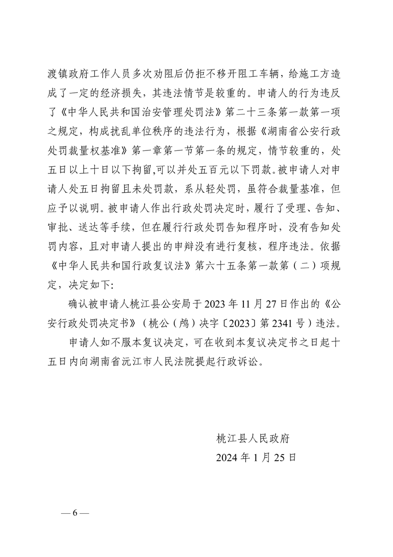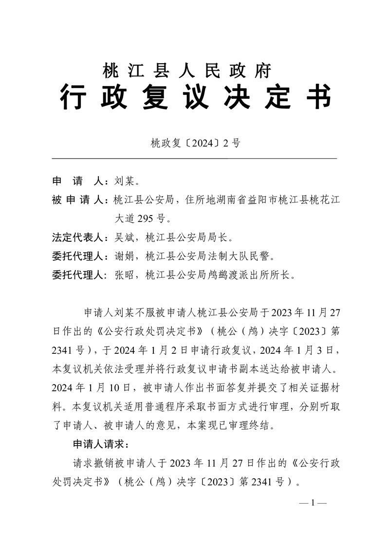 行 政 复 议 决 定 书 桃政复〔2024〕2号